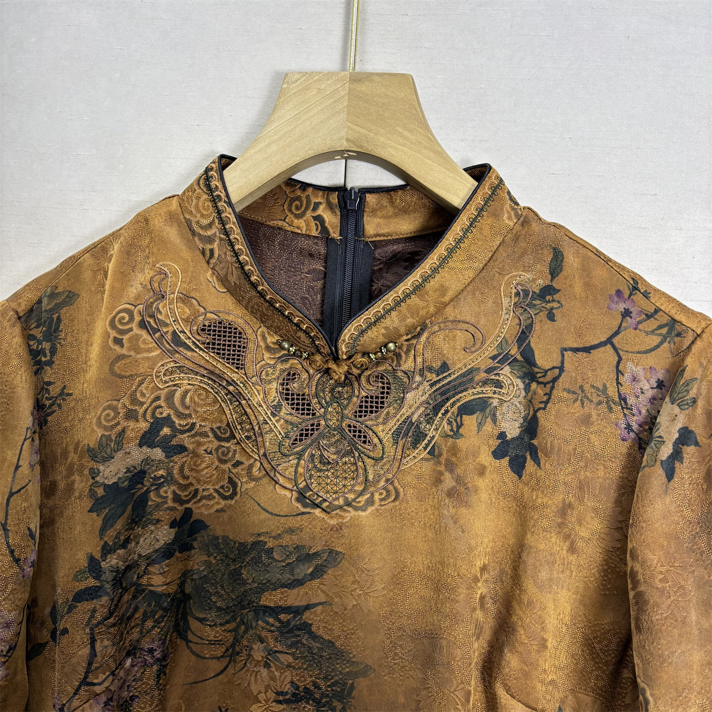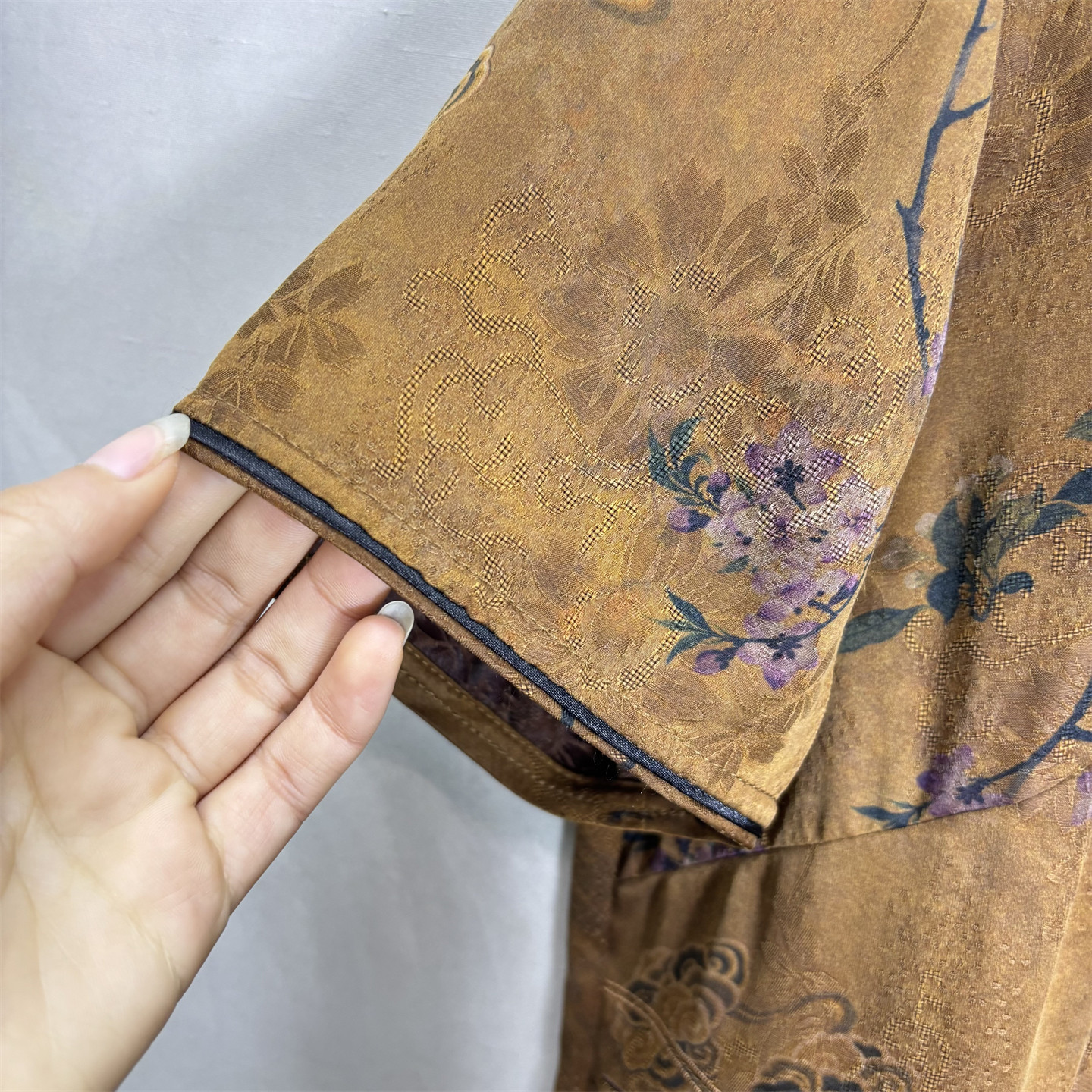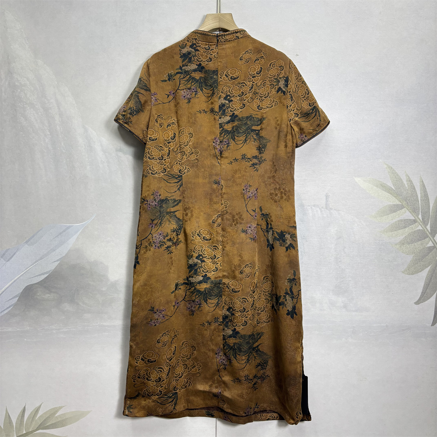 高货~满分桑蚕丝花罗香云纱连衣裙25时尚气质透孔提花真丝旗袍裙
