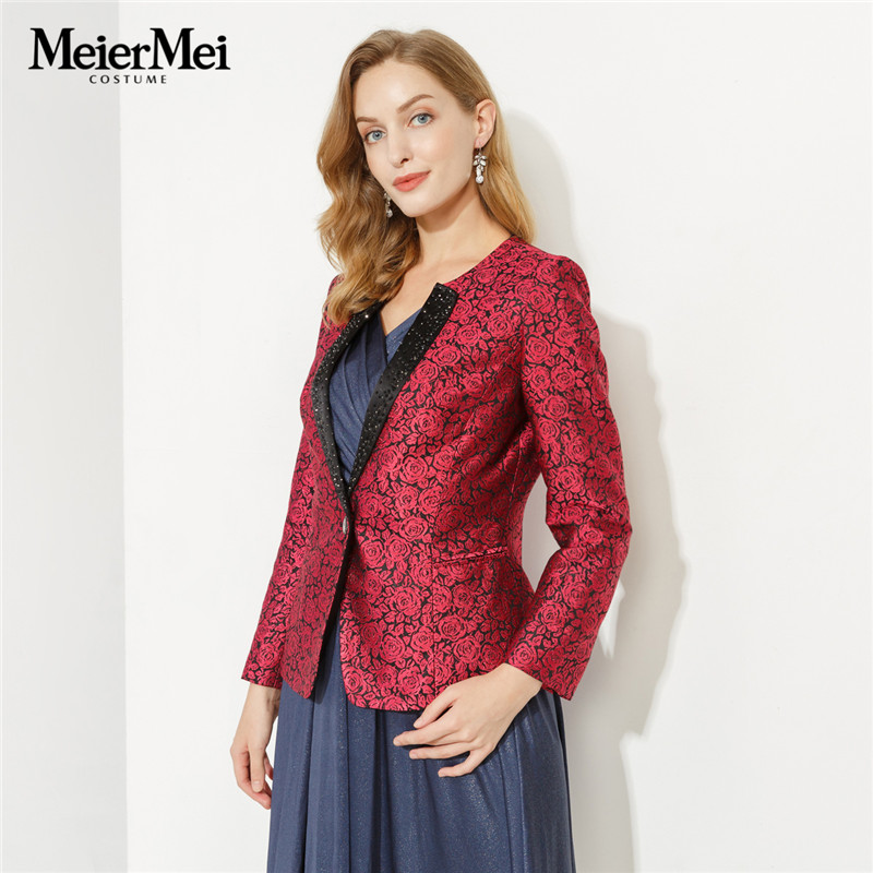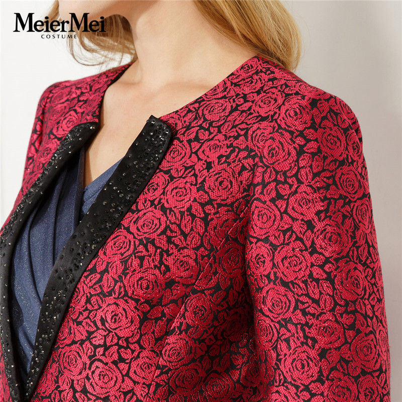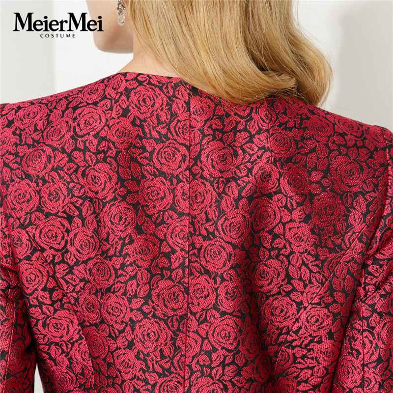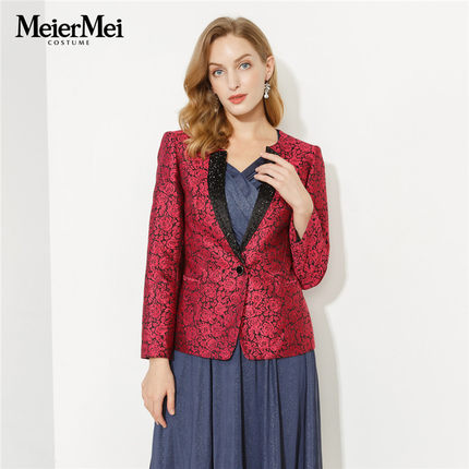 玫而美品牌专柜时尚玫瑰印花修身小西服女装春秋短外套MCSN27720
