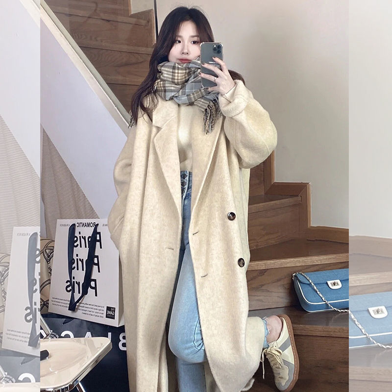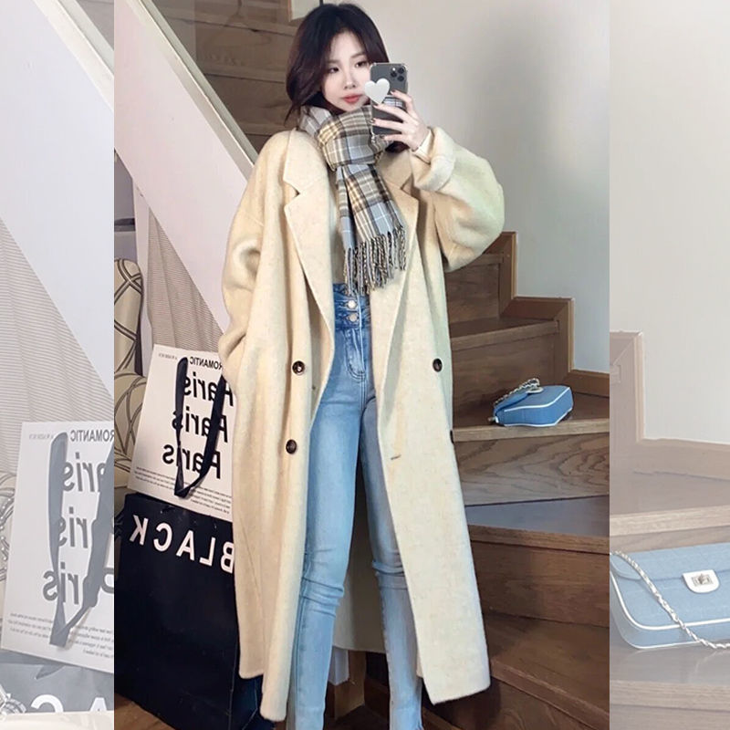 2021年新款冬季白色呢大衣小众中长款小个子高级感毛呢外套女冬装