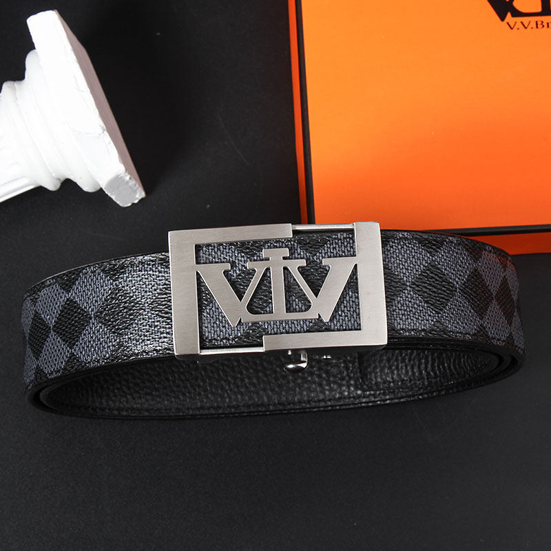 VVBrown新款男士内穿自动扣皮带真皮头层牛皮中青年商务正装腰带