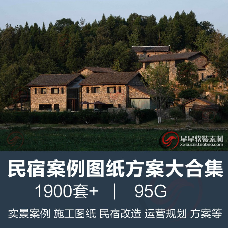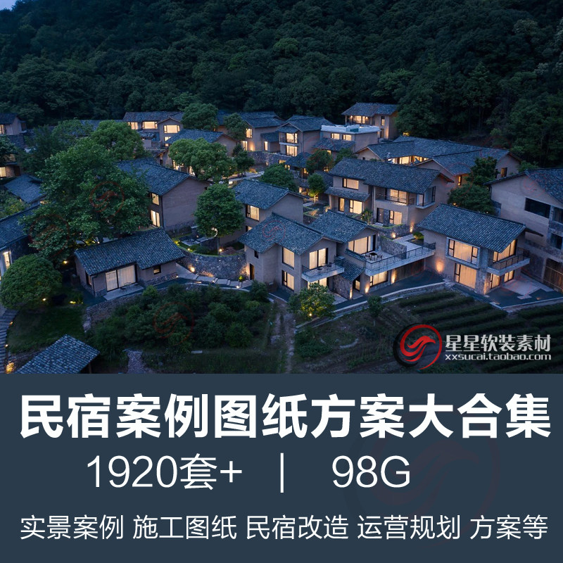 民宿客栈度假酒店实景案例CAD施工图纸装修设计效果图改造方案等