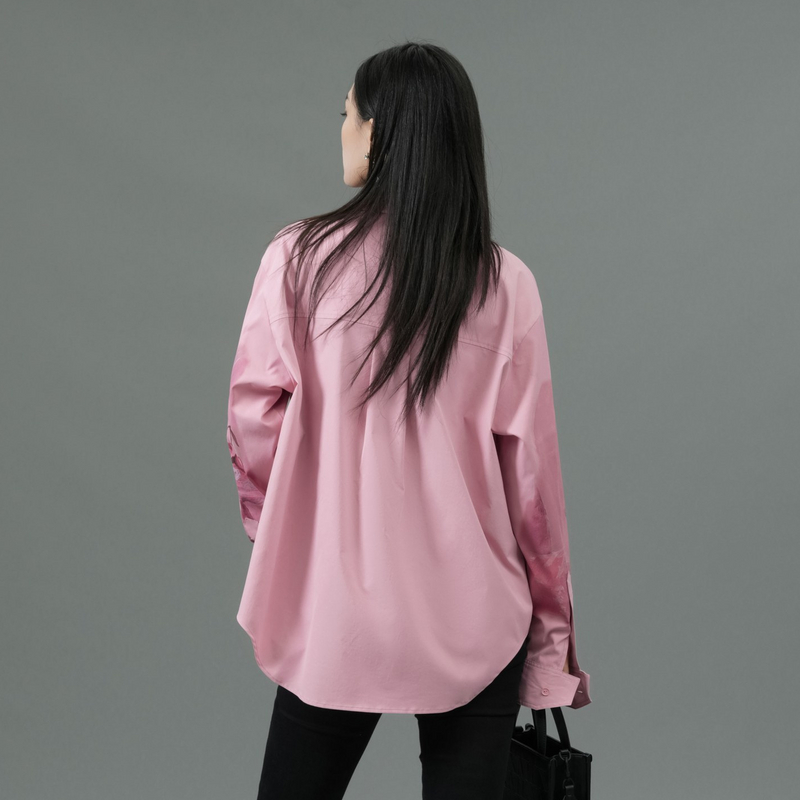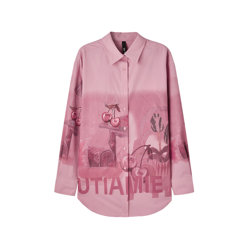 U/TI慕斯粉艺术印花衬衫女装百搭设计感休闲上衣尤缇2025春季新款