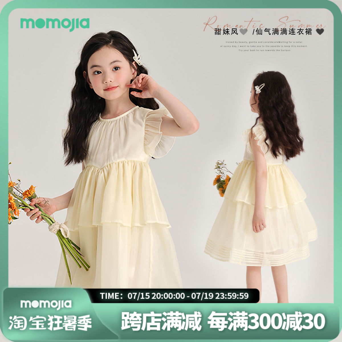 沫沫家夏装女童洋气长裙2024夏季新款儿童公主风连衣裙
