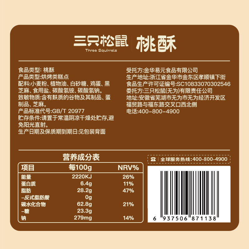 三只松鼠_桃酥营养早餐传统特产零食伴手礼中式糕点心年货送礼盒