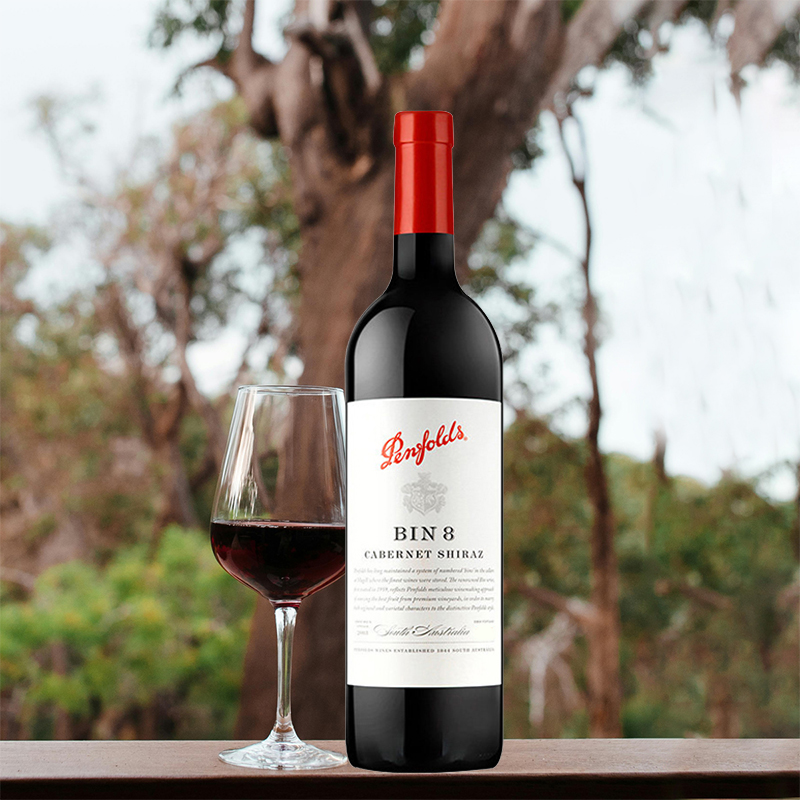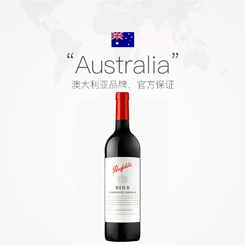 【自营】澳洲原瓶进口奔富BIN8赤霞珠西拉干红葡萄酒木塞跨境
