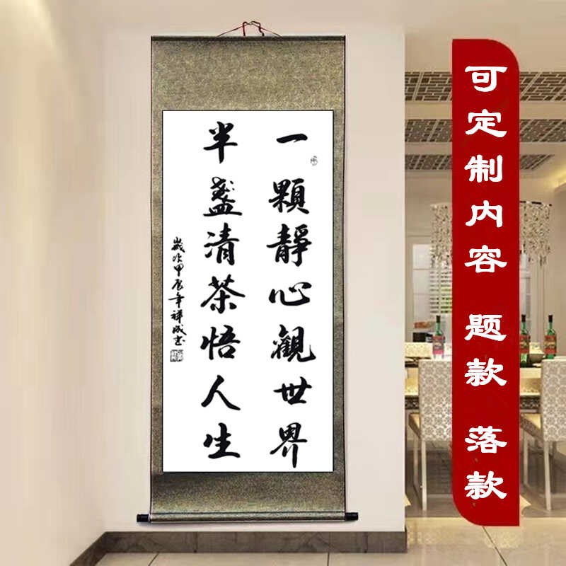 静心字画办公室书房茶室励志书法励志挂画天道酬勤卷轴书画装饰画