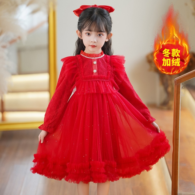 女童春秋新款连衣裙中国风旗袍加绒公主裙中式婚礼花童礼服蓬蓬裙