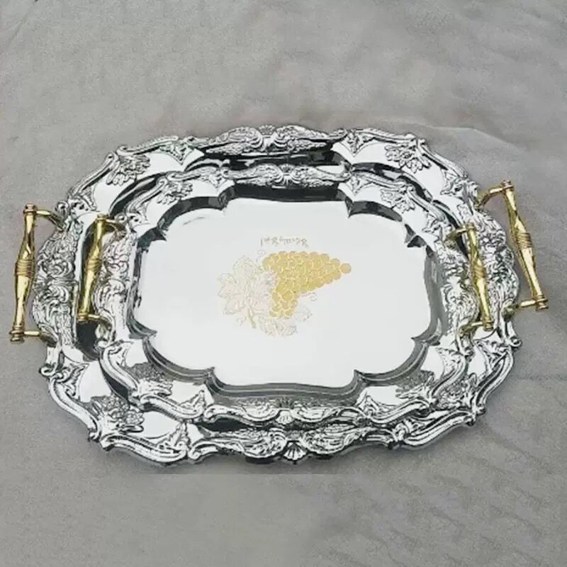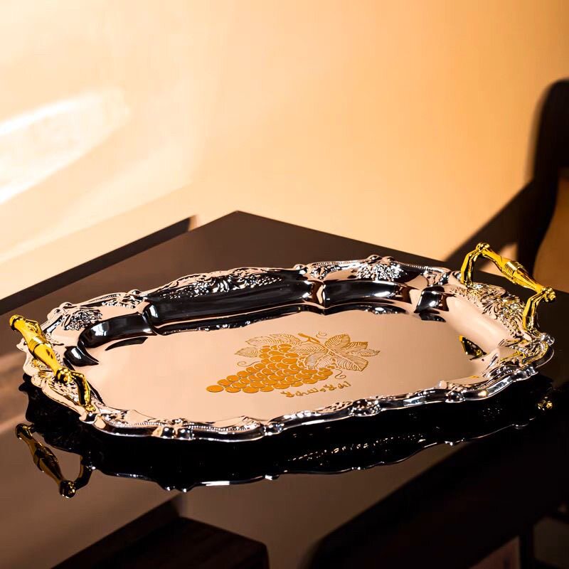 轻奢复古不锈钢餐用托盘