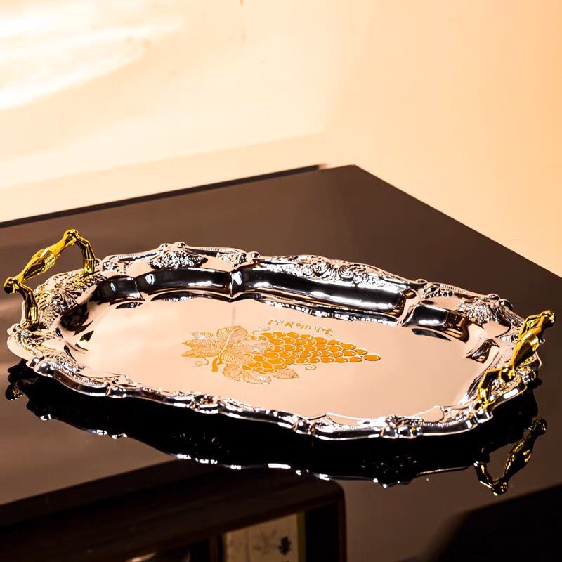 轻奢复古托盘不锈钢酒店果盘家用客厅收纳盘装饰摆件盘