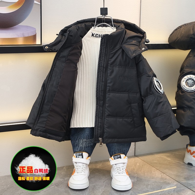 儿童羽绒服男童冬季外套加厚2025新款中长免洗男孩冬装白鸭绒袄潮
