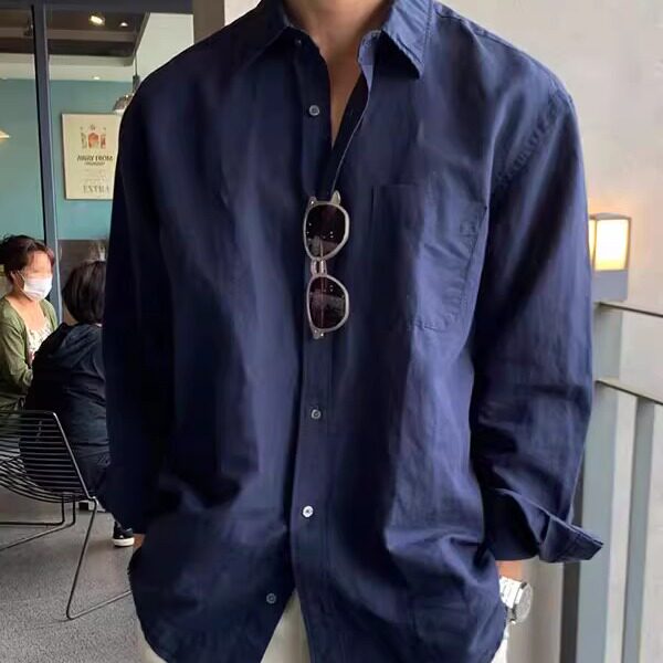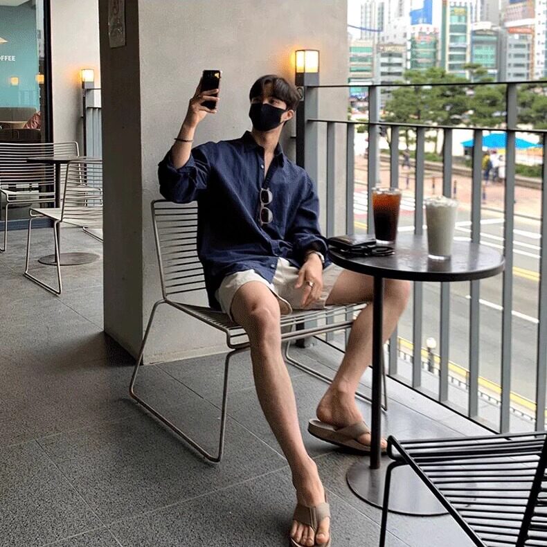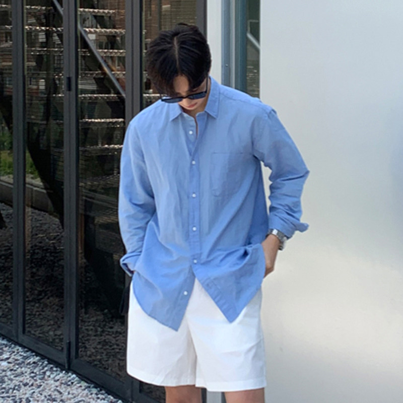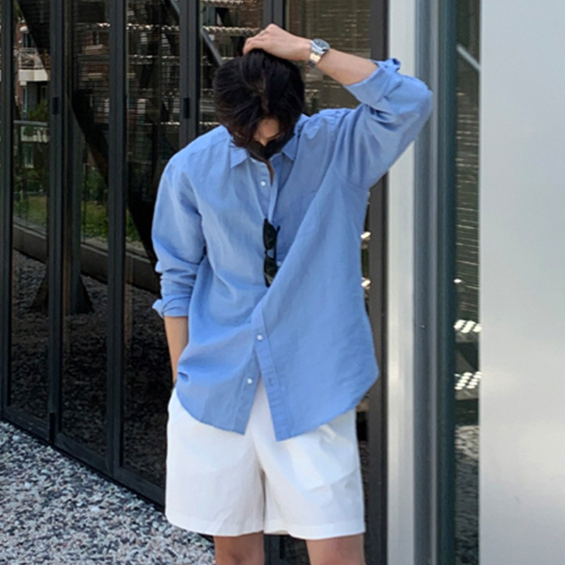 慵懒风棉麻长袖衬衫套装男薄款透气防晒开衫亚麻工装短裤两件套潮