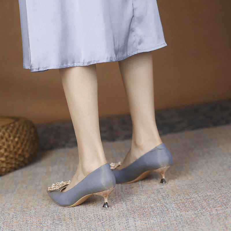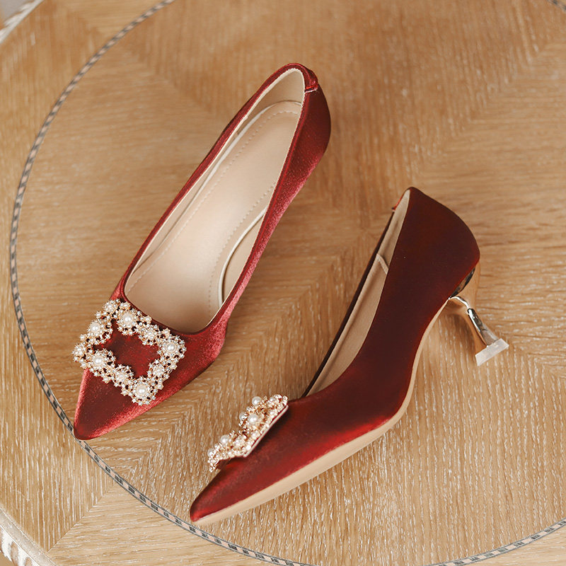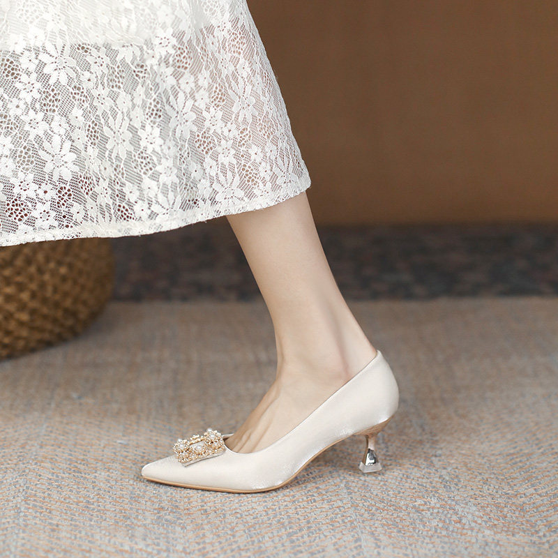 高跟鞋气质尖头法式单鞋女2024新款春秋婚鞋新娘鞋33 34小码女鞋