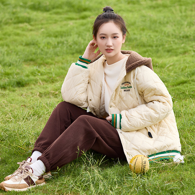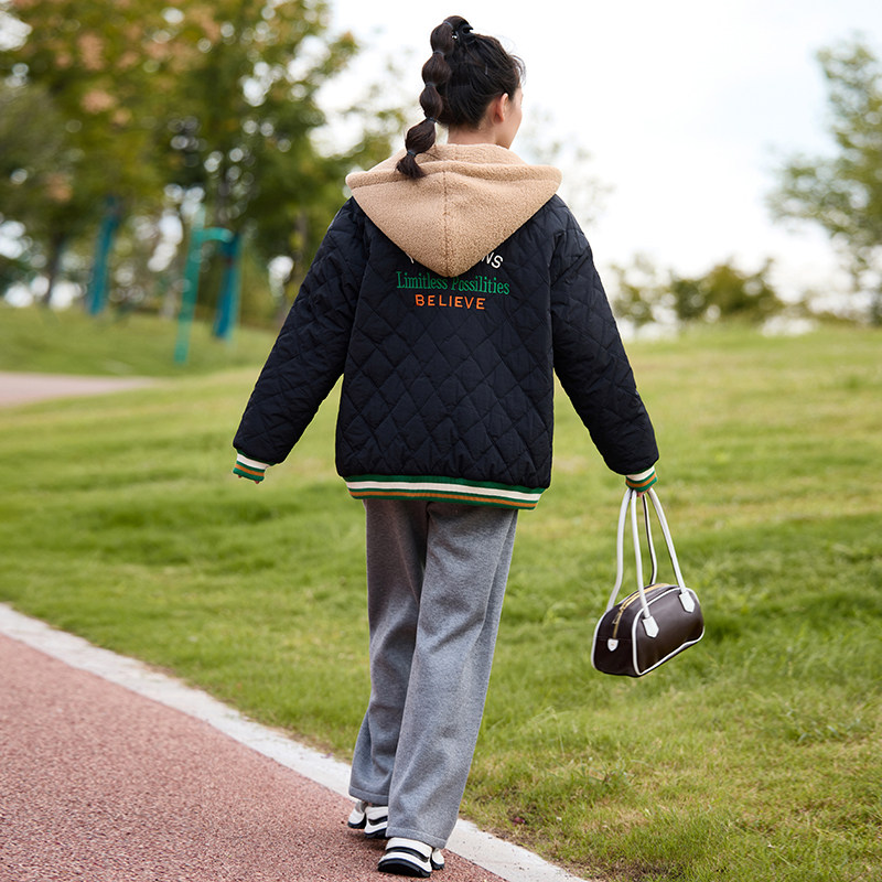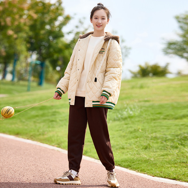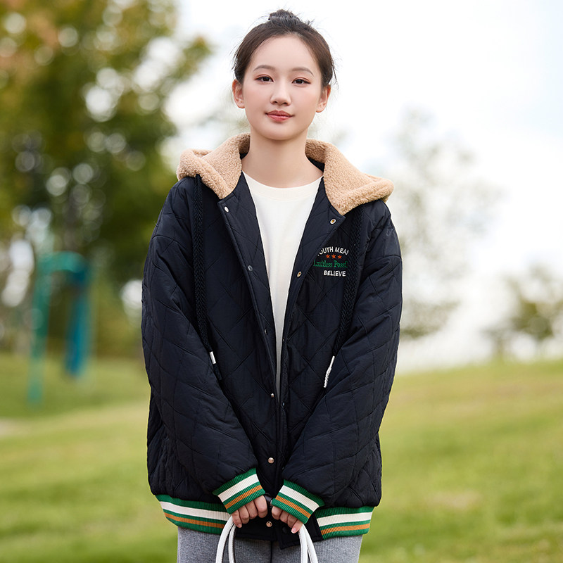 棉服外套高初中学生2025冬季新大童棒球服少女棉袄菱形格棉衣套装