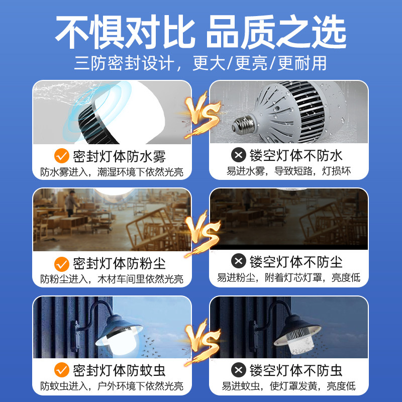 led三防灯泡e27螺口足瓦大功率节能超亮工厂车间照明灯室外防水灯