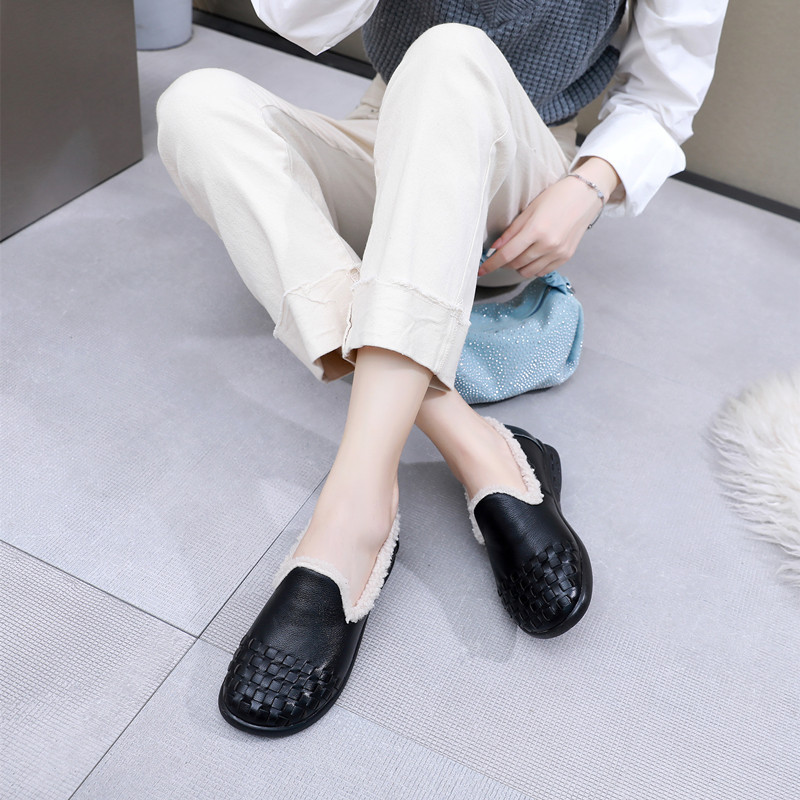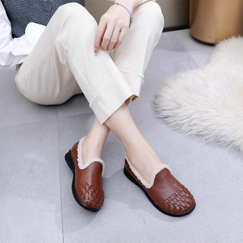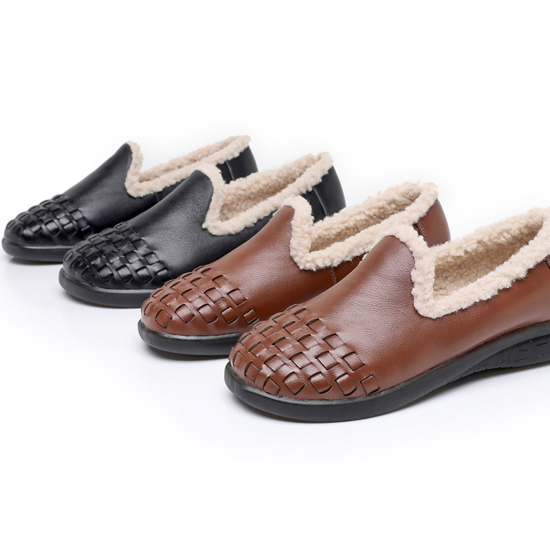 品牌店2023秋冬季真皮妈妈鞋毛毛皮鞋女软底加绒保暖棉鞋中年