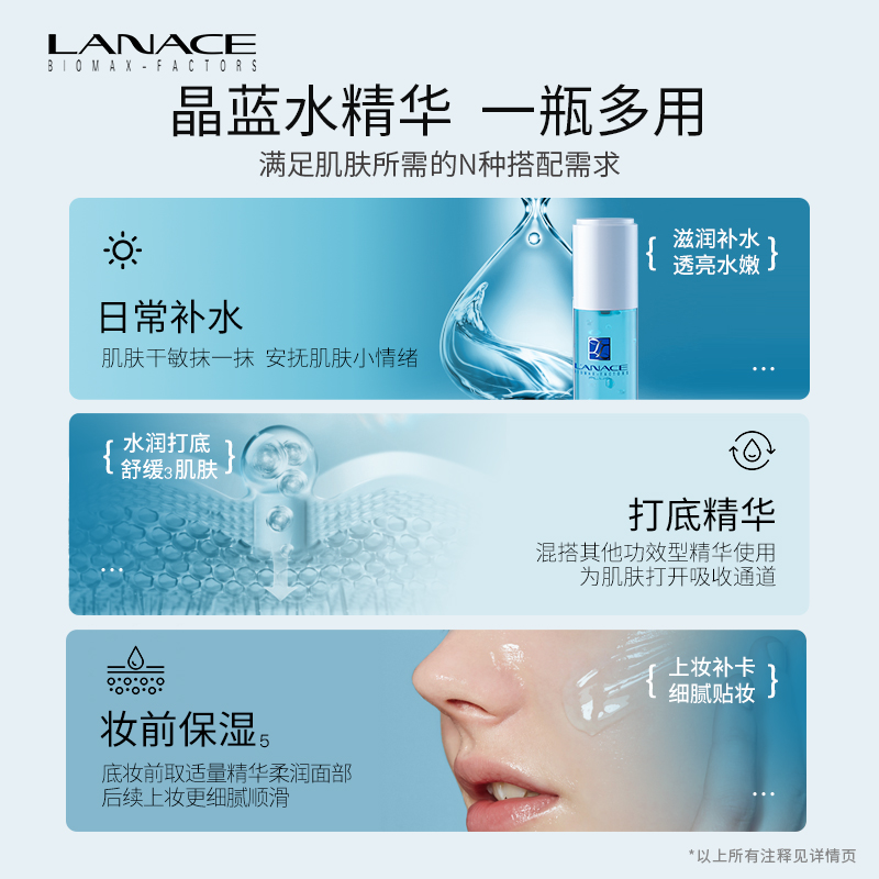 Lanace/朗斯晶蓝纯粹补水保湿精华液面部精华啫喱干燥 清爽滋润女