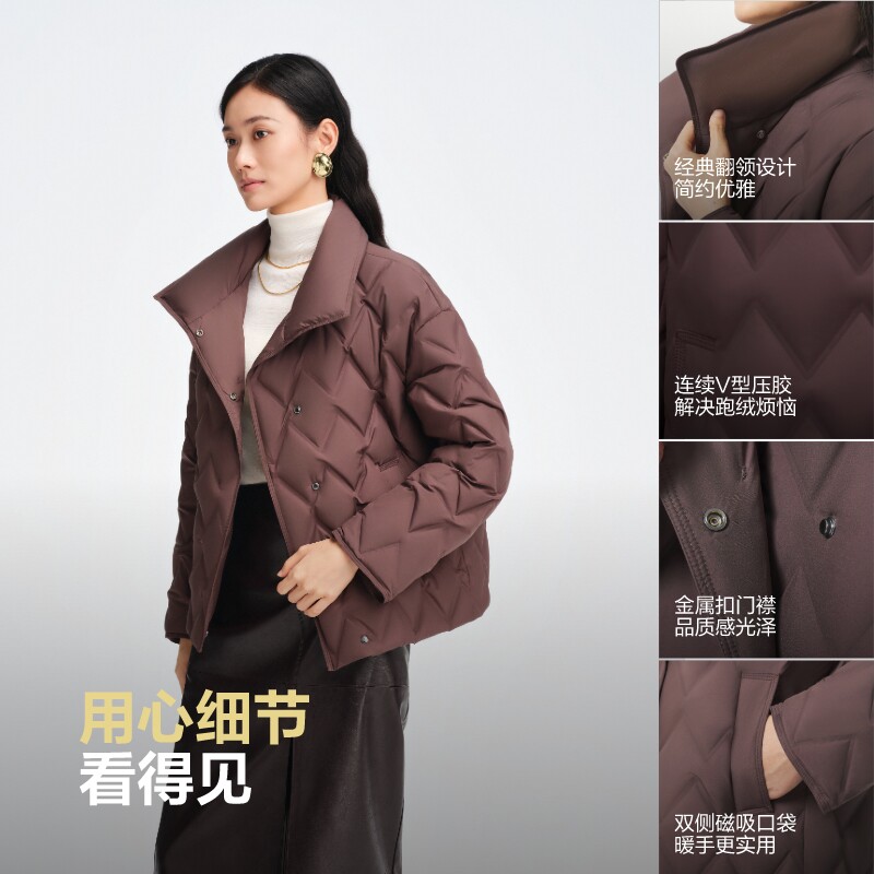 波司登羽绒服女25秋季新款翻领商务亲肤舒适鹅绒短外套B250134114
