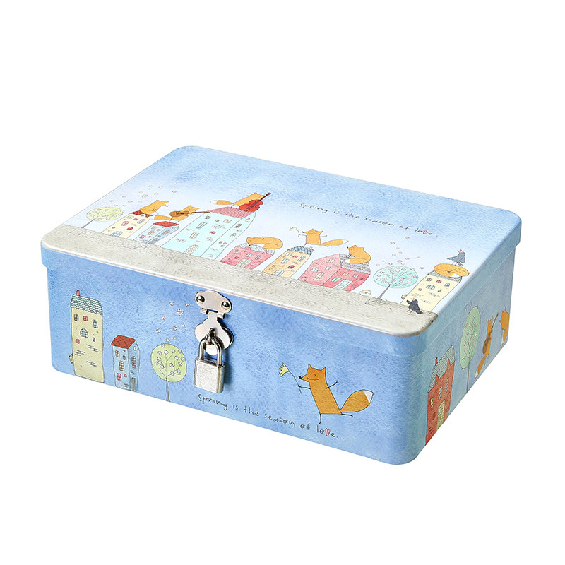 复古风带锁桌面储物马口铁盒子