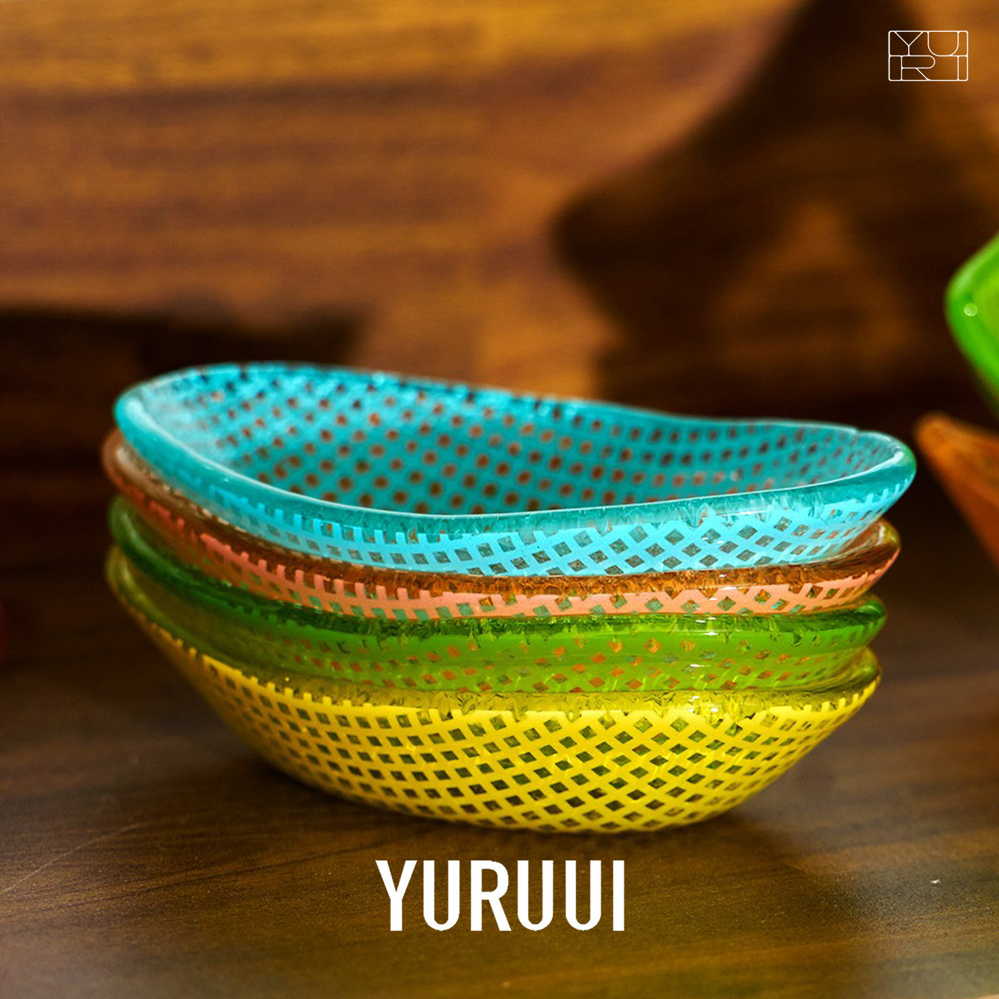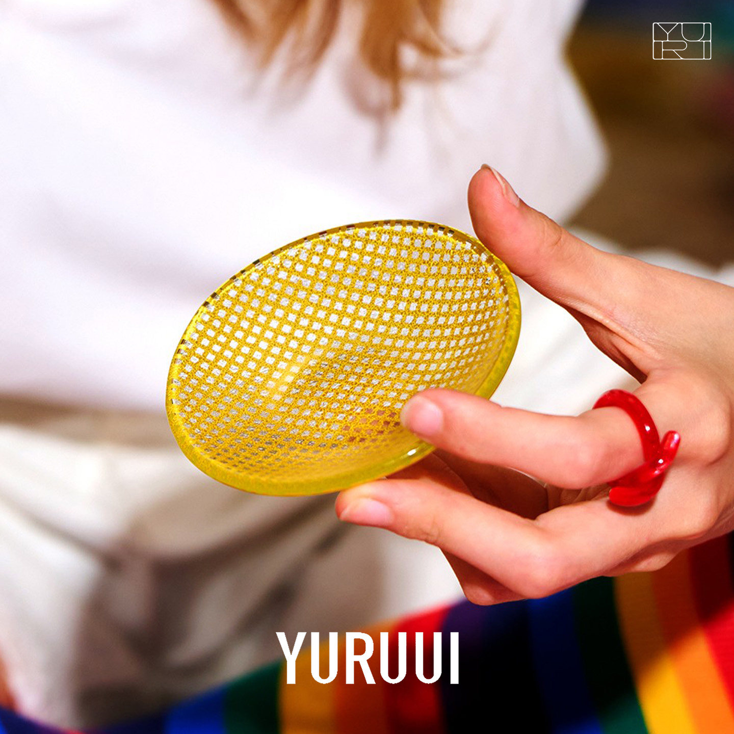 [YURUUI设计师]韩国Eding彩色方格玻璃花纹材质小碟蘸料小碟