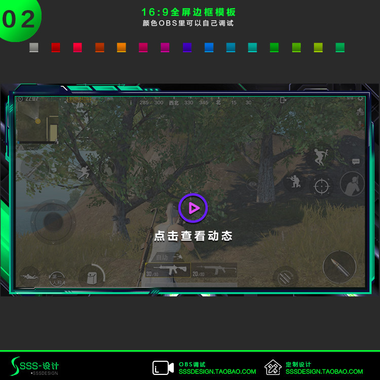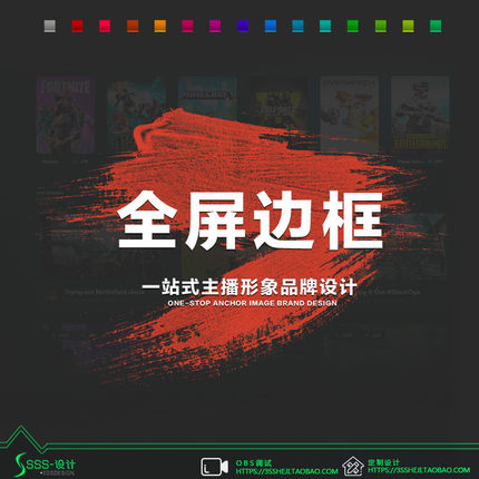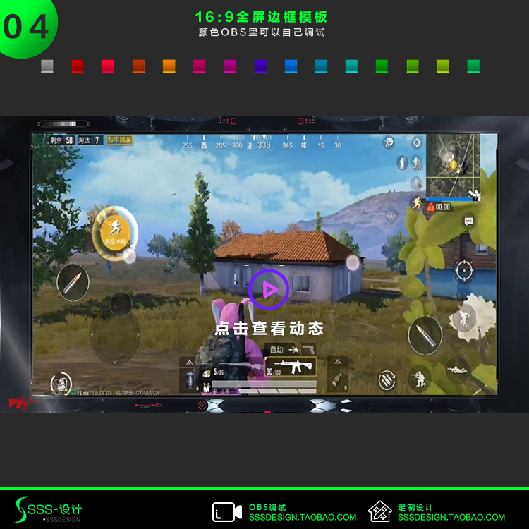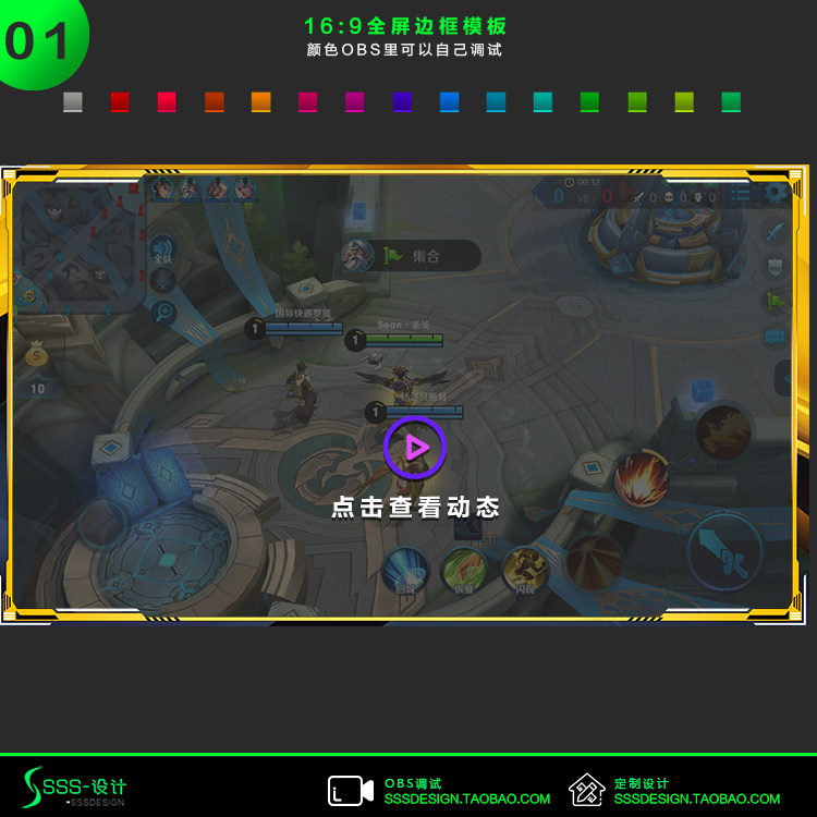 OBS游戏主播和平精英动态透明边框王者荣耀全屏直播间模板16:9