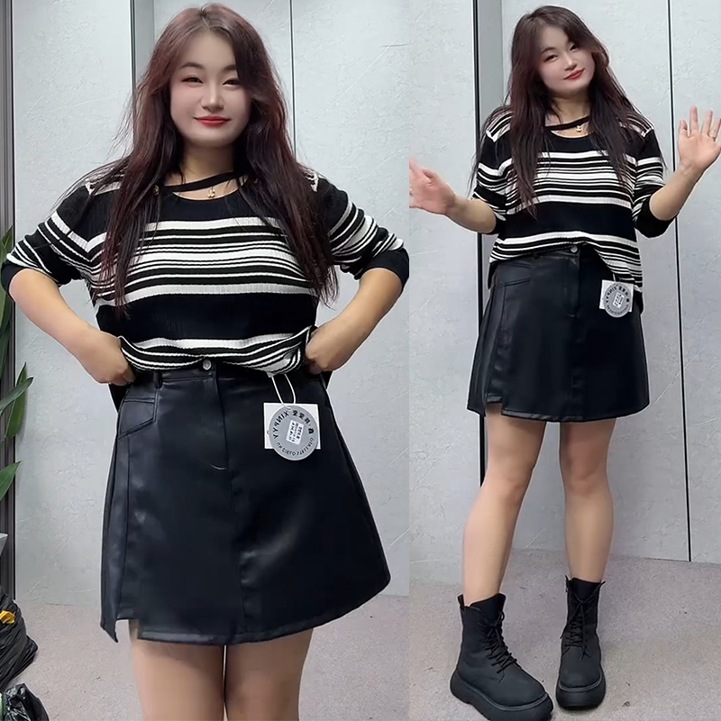 超火百搭pu小皮裙半身裙女秋冬大码高腰开叉遮胯显瘦A字包臀短裙