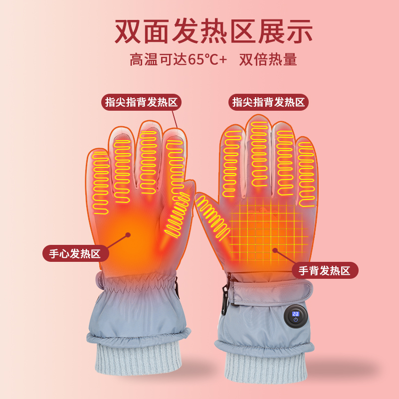 充电加热手套冬季保暖防寒双面发热加绒加厚户外滑雪电暖护手男款