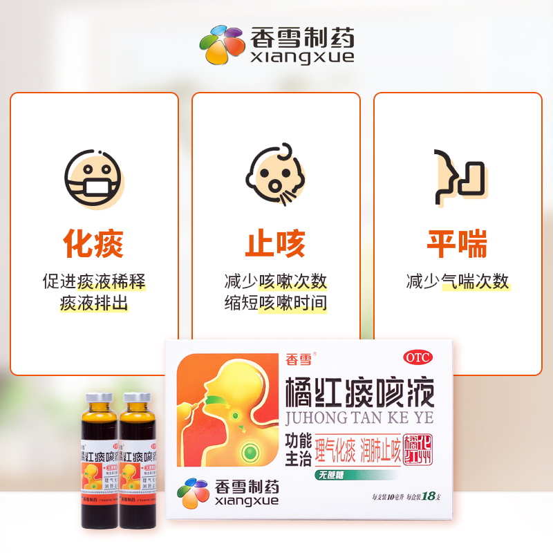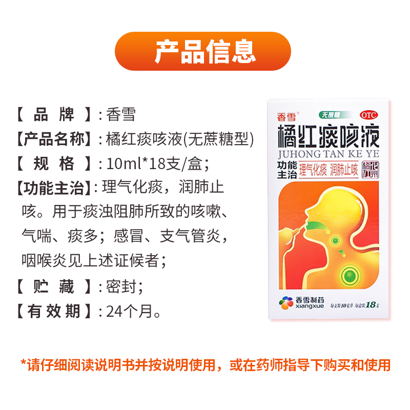 【香雪】橘红痰咳液10ml*18支/盒家中常备咽喉炎支气管炎润喉祛痰止咳