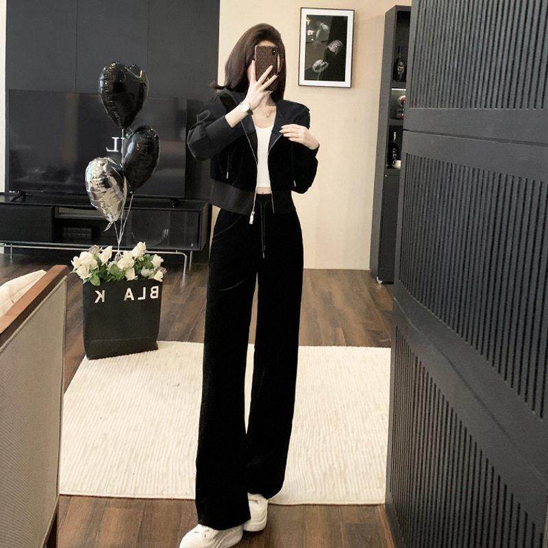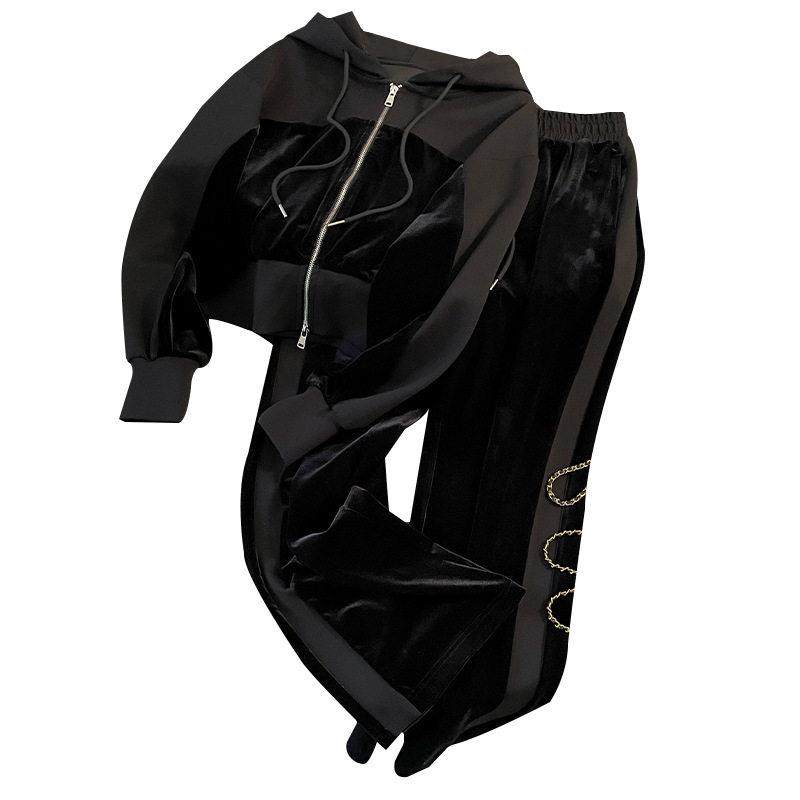 欧洲站休闲运动套装女春秋冬2025新款时尚高级感金丝绒卫衣两件套