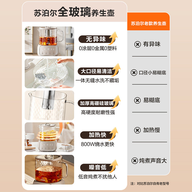 苏泊尔全玻璃养生壶炖煮一体办公室小型烧水壶花茶煮茶壶2025新款