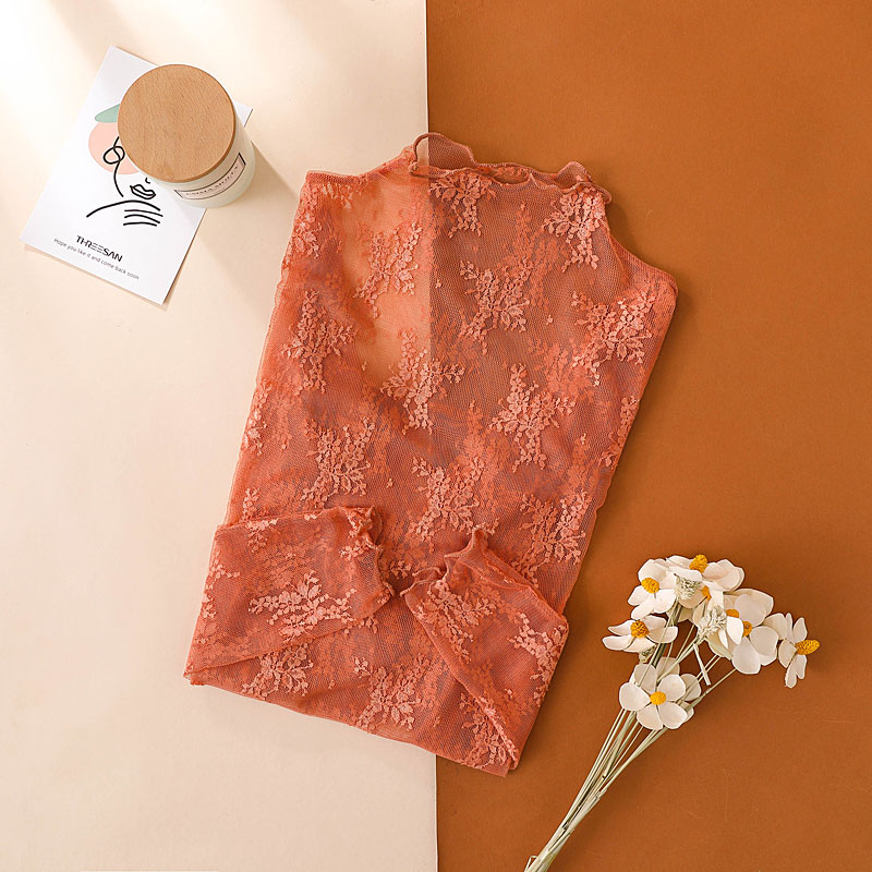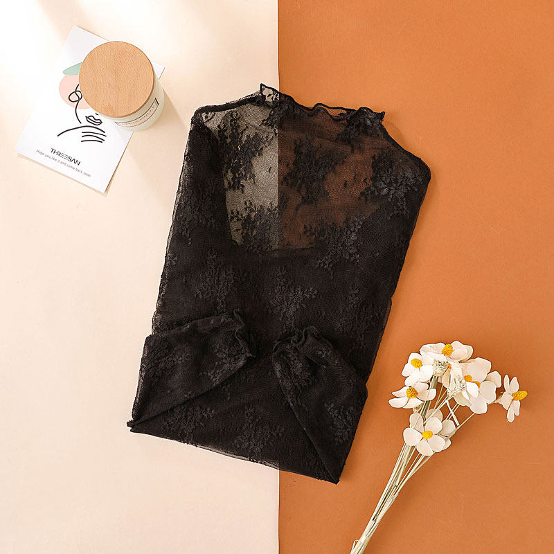 黑色半高领蕾丝打底衫女秋冬高级感西装内搭薄纱透视透明网纱上衣
