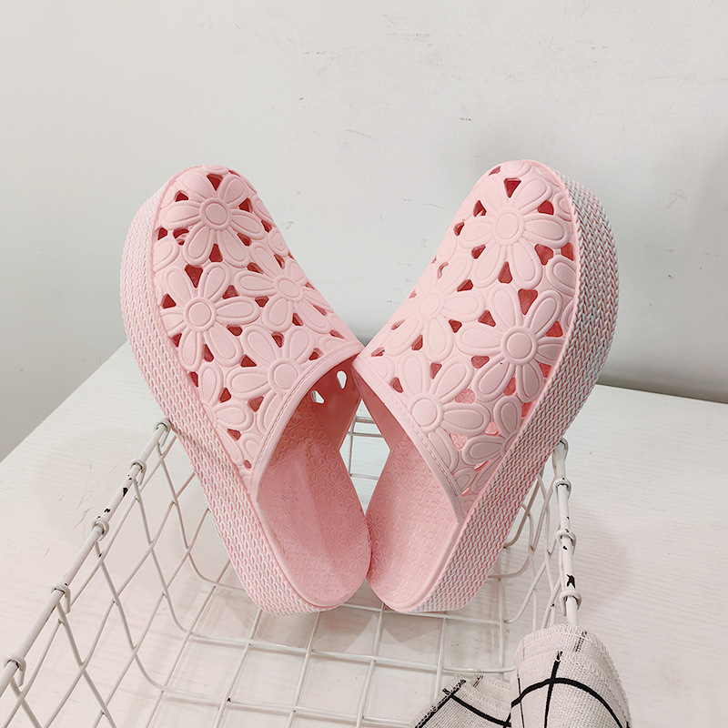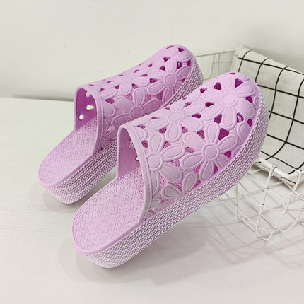 非常防滑越南乳胶拖鞋女包头厚底坡跟不臭脚镂空透气妈妈沙滩凉鞋