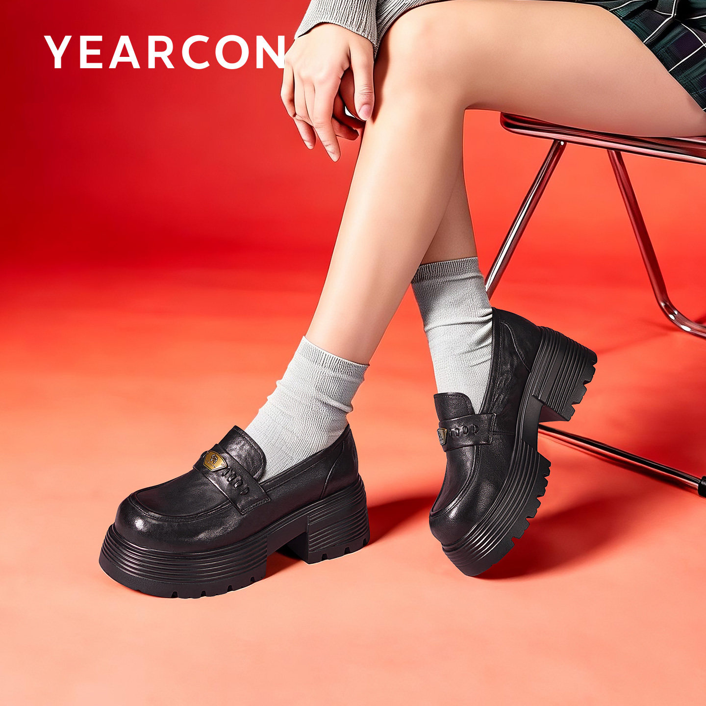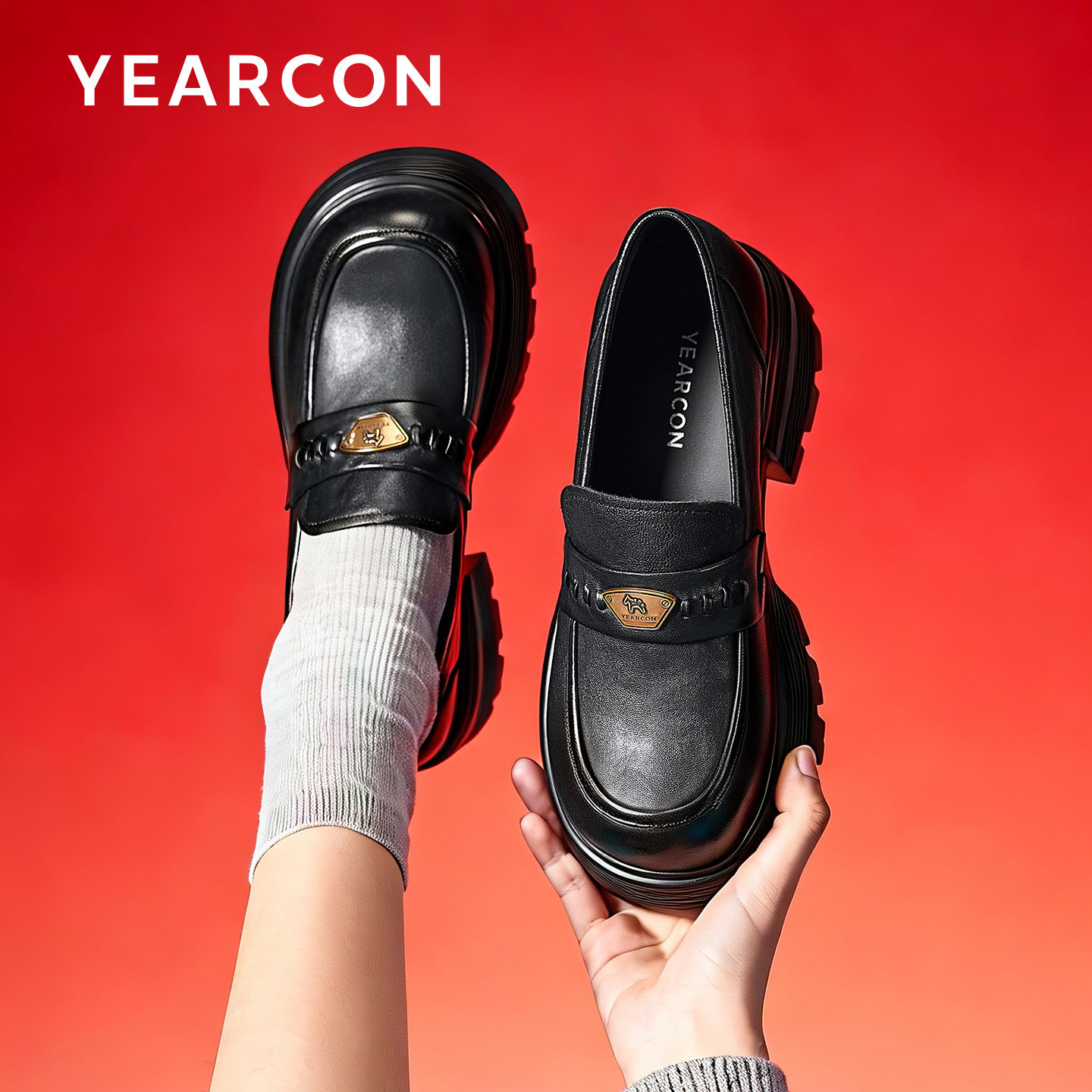 意尔康黑色乐福鞋女厚底2026春新款英伦风配裙子小皮鞋一脚蹬单鞋