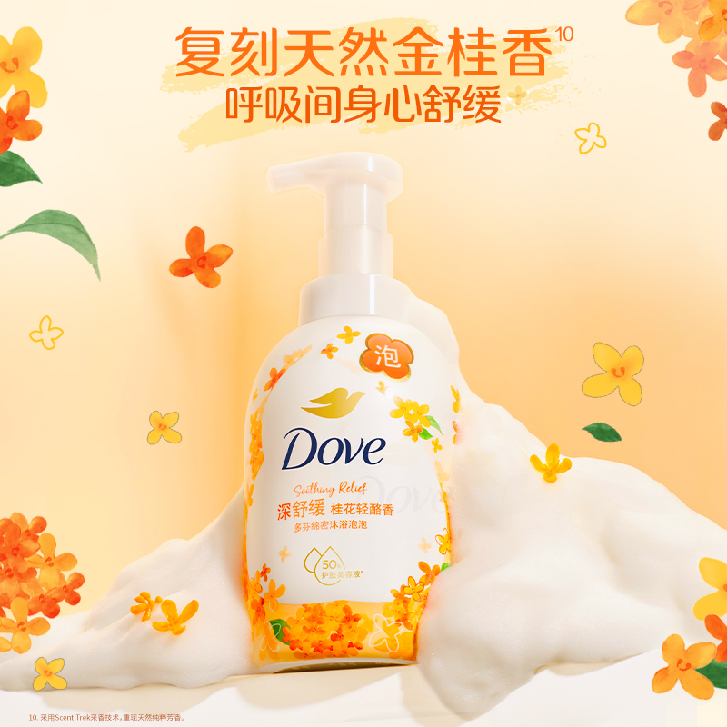 【立即抢购】多芬桂花泡泡沐浴露绵密奶泡沫慕斯温和滋润400g