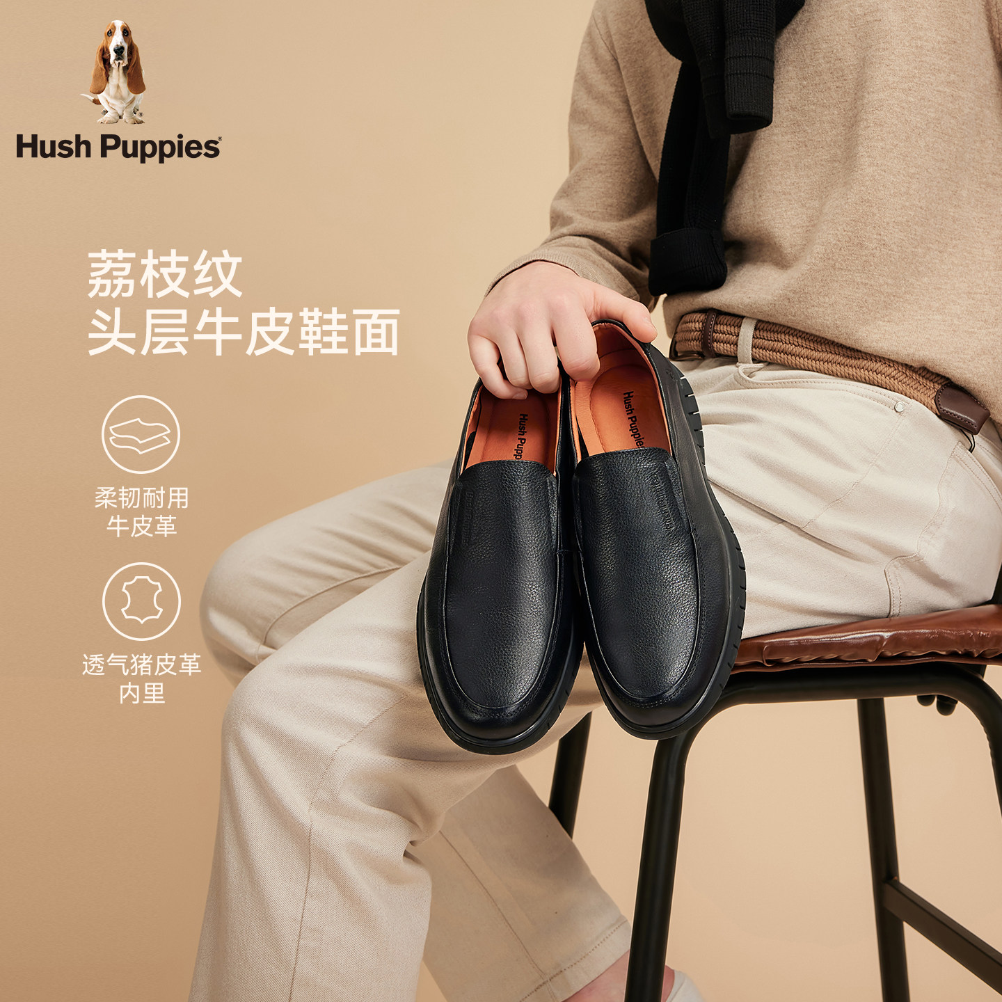 暇步士男士正装皮鞋春秋新款一脚蹬商务牛皮荔枝纹真皮舒适男鞋