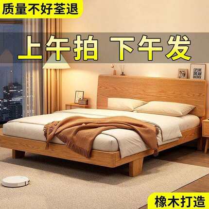 床实木床双人1.8x2米主卧大床家用1.5米小户型出租房1.2m单人床架