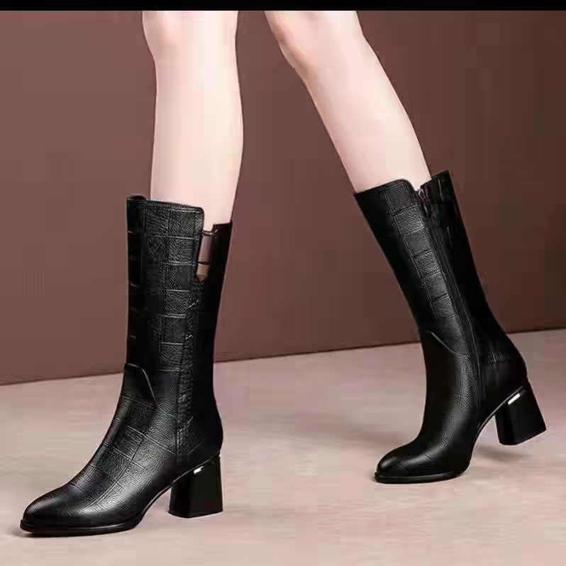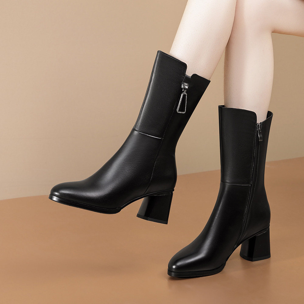 断码清仓女鞋短靴秋冬季靴子女粗跟真皮中筒马丁靴加绒皮靴高跟鞋