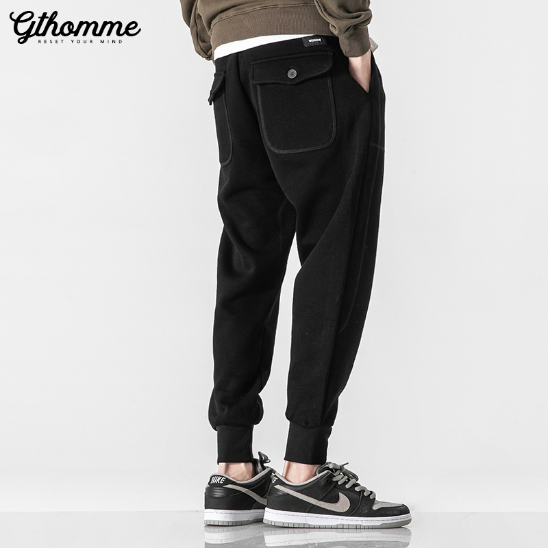 秋冬季加绒裤子男款卫裤男宽松束脚裤潮流运动裤休闲长裤潮牌男生