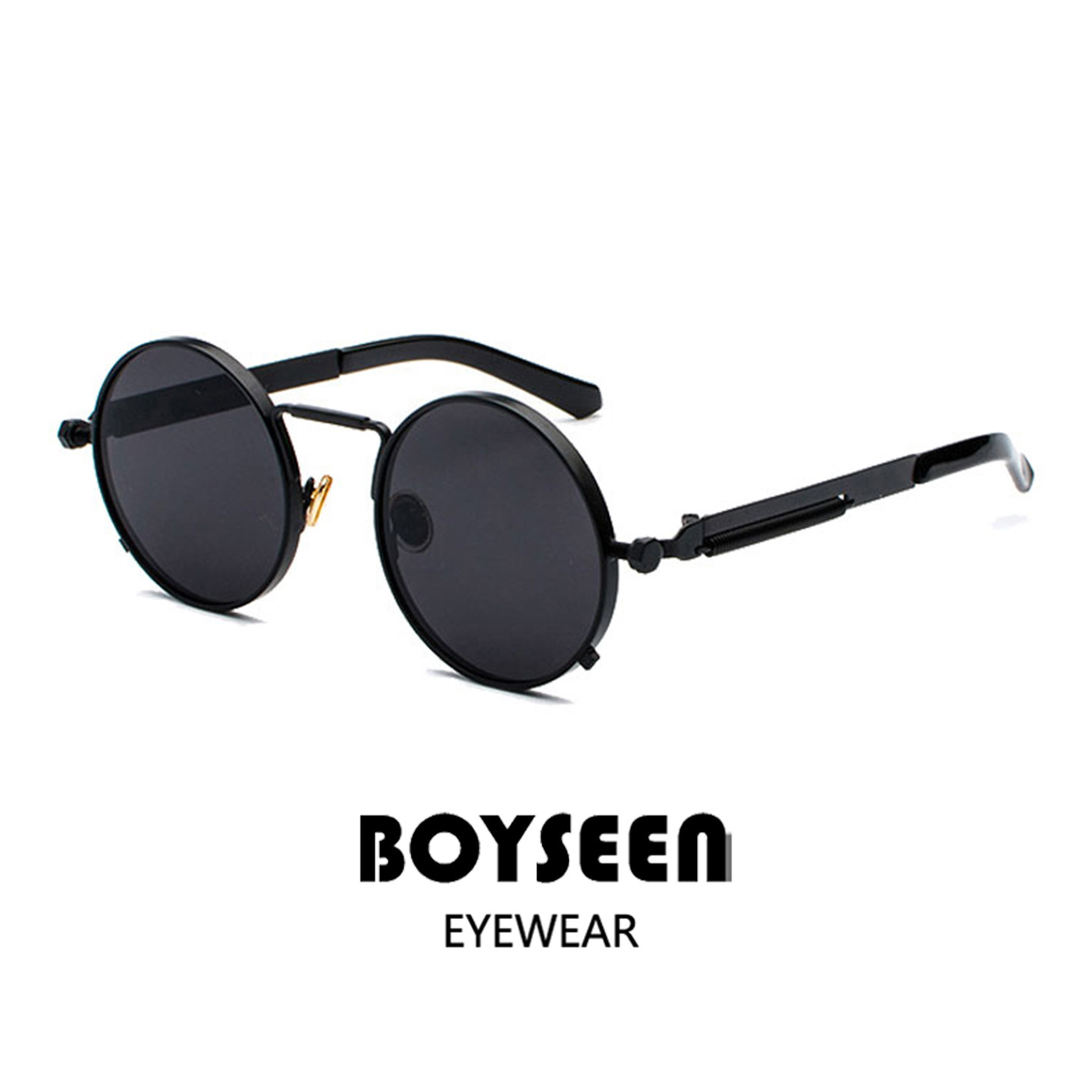 复古摩登时尚太阳眼镜男女圆形朋克风街拍太阳镜金框蓝镀膜可配镜