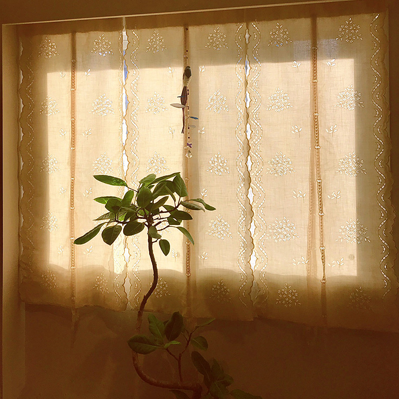 成品气球帘提拉帘纱镂空美式棉麻遮光卧室升降小窗帘免打孔可粘贴