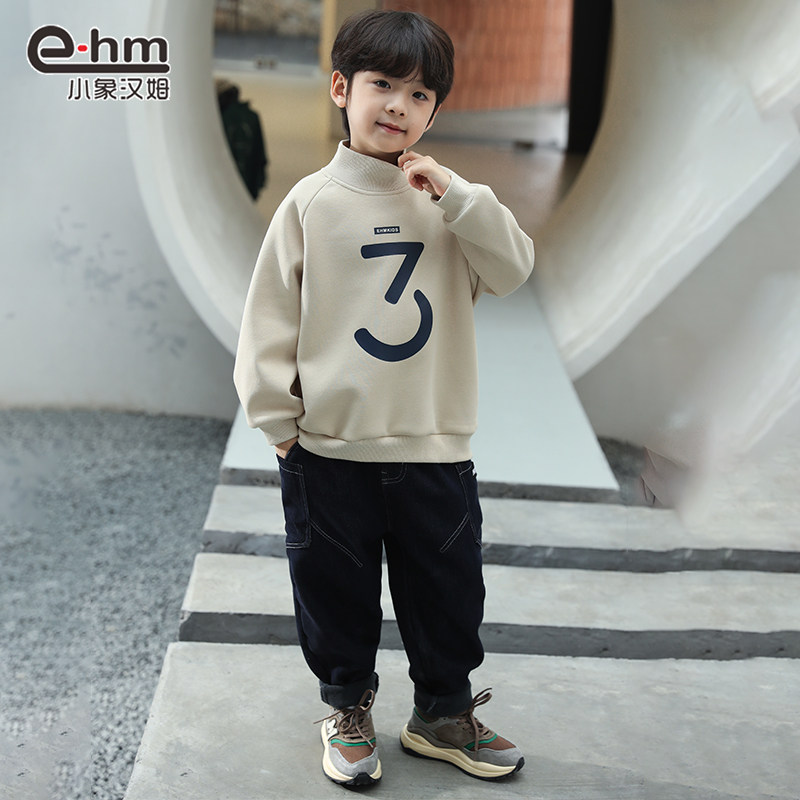 小象汉姆秋冬季男童加绒卫衣新款