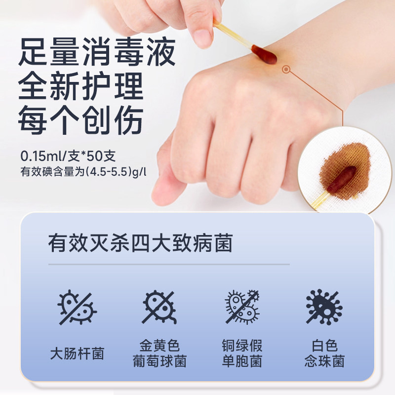 海氏海诺碘伏棉签清洁肚脐碘伏消毒棉棒一次性碘伏消毒棉签消毒液
