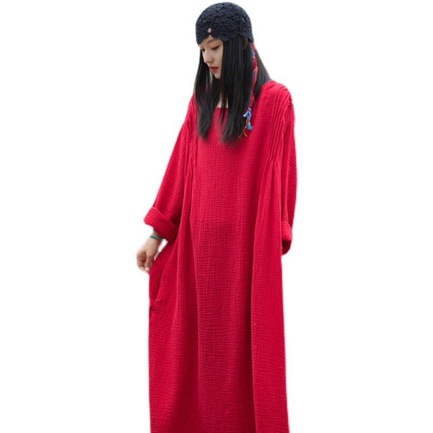 棉麻连衣裙袍子纯色复古长款大摆