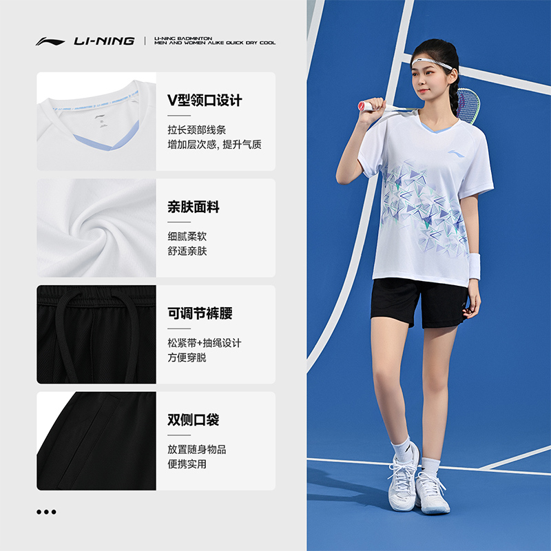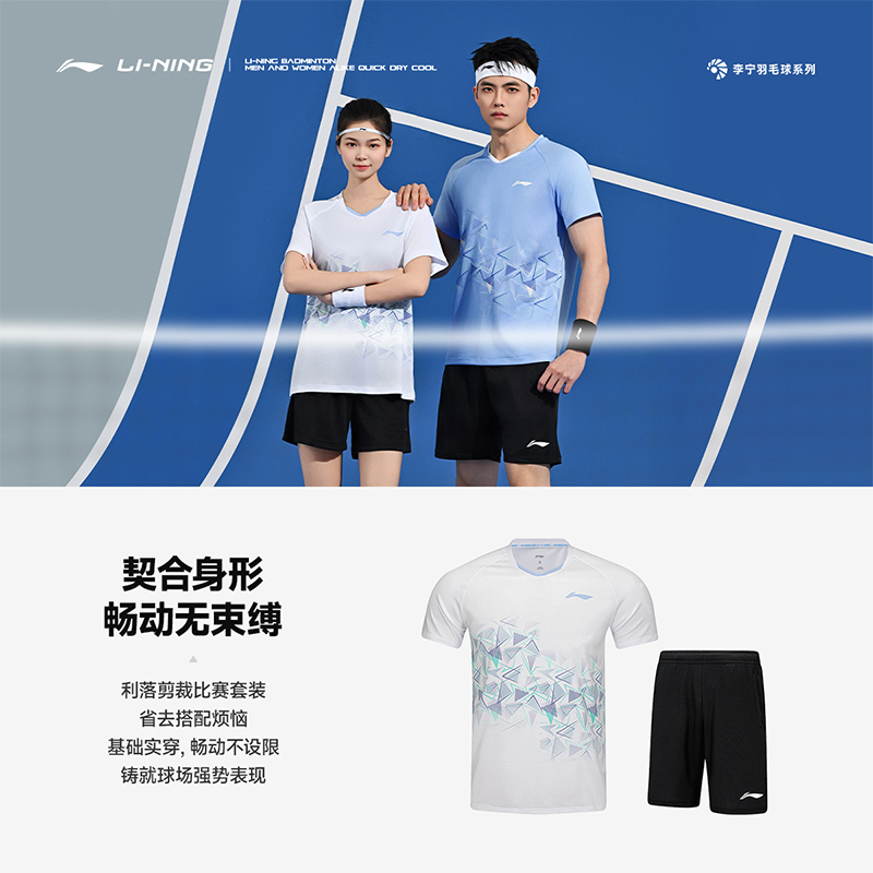 LI-NING李宁官方正品羽毛球服比赛服套装速干透气训练男女AATV009