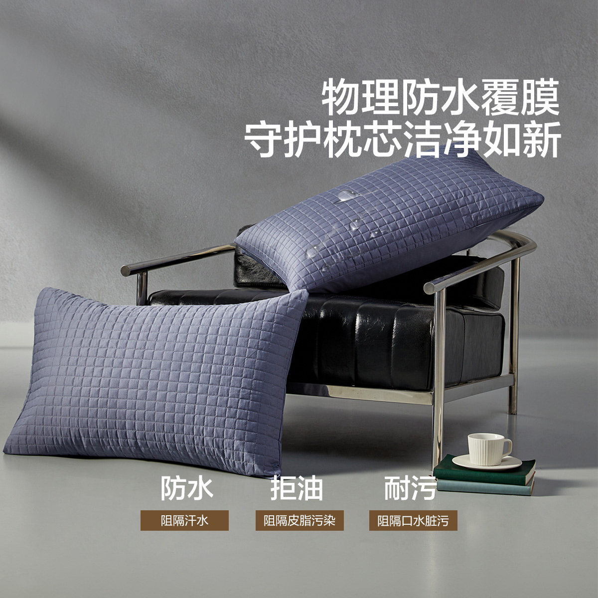 水星家纺防水枕套全棉抑菌枕头套一对装A类简约素色枕芯套74x48cm