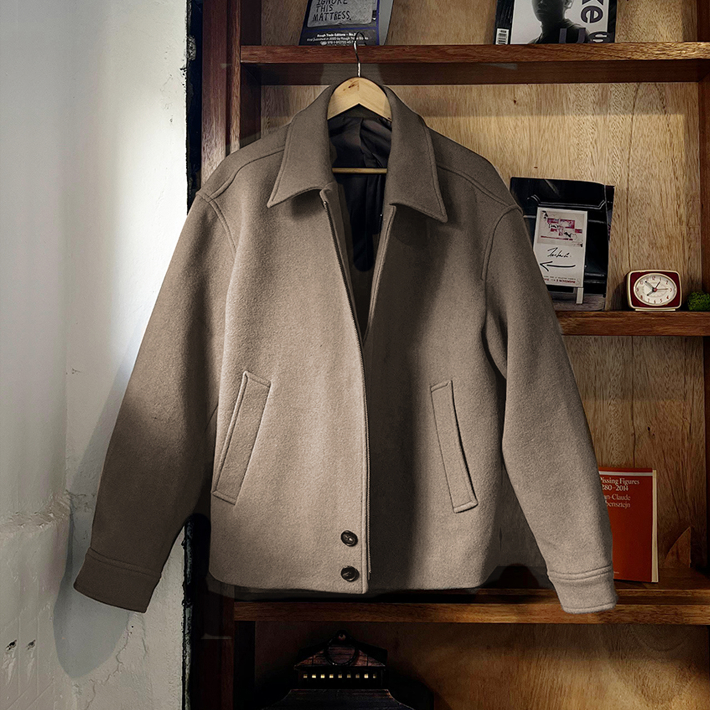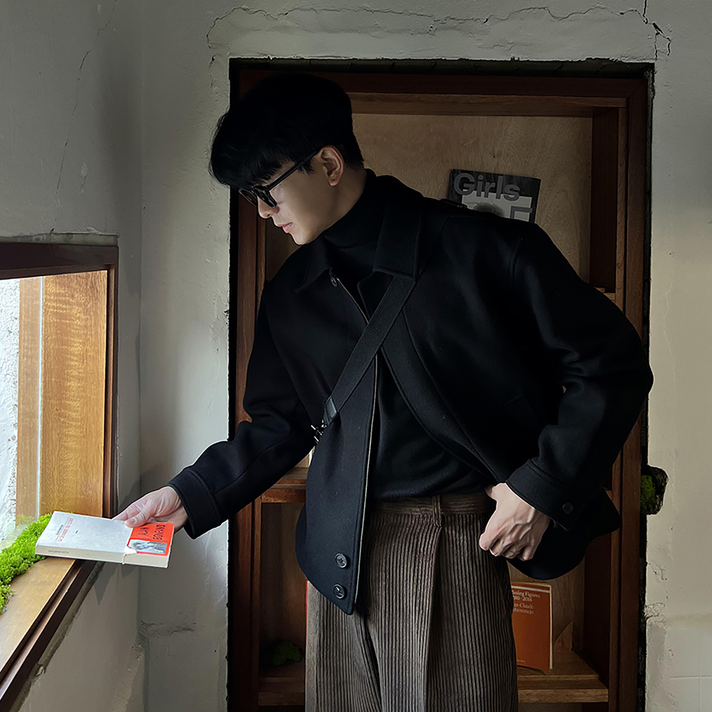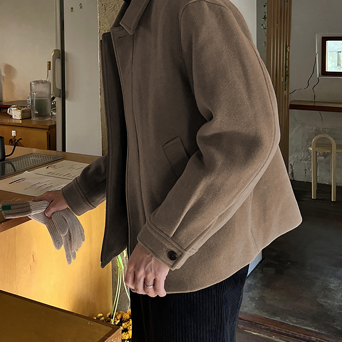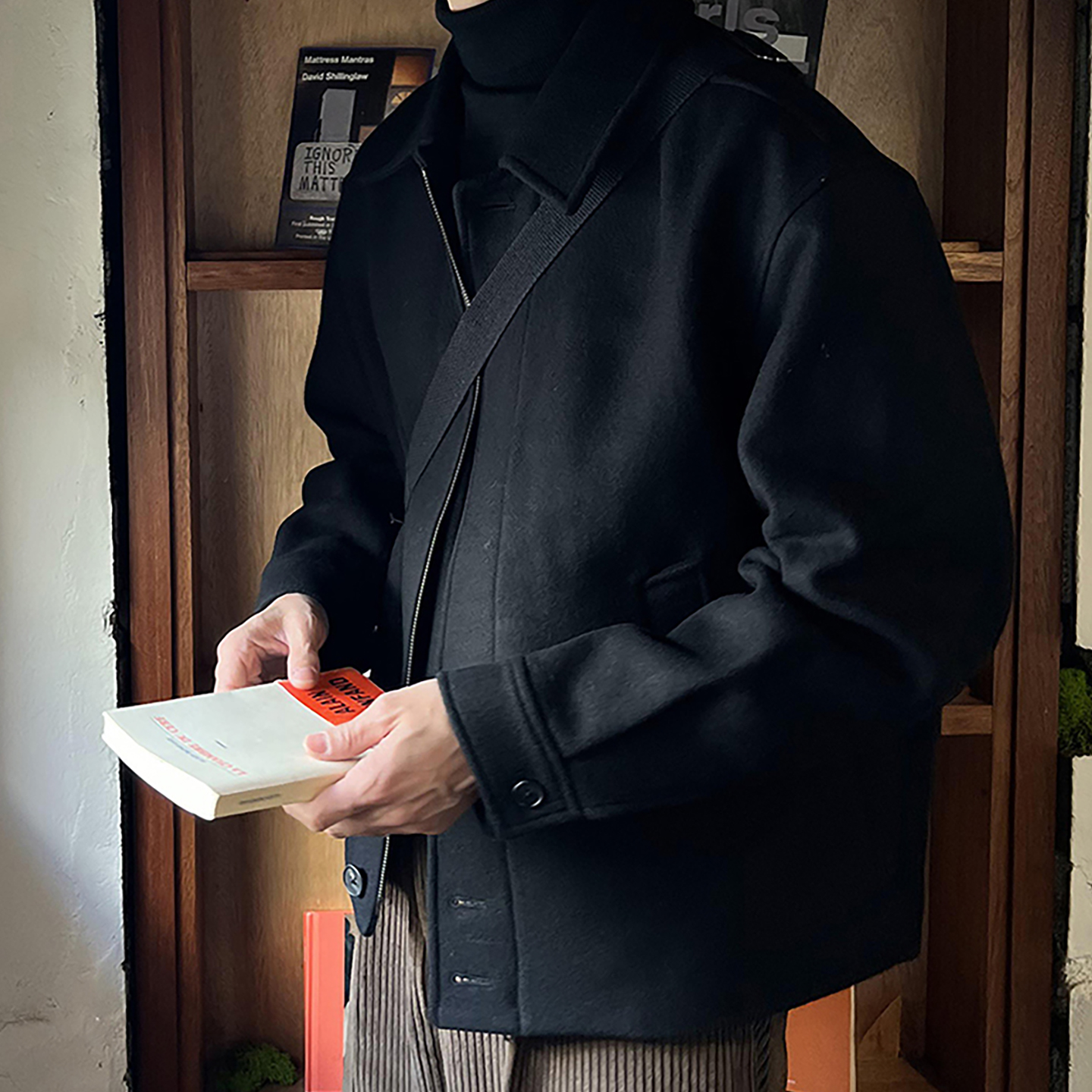 碧舍秋冬男士毛呢大衣短款外套翻领单排扣韩版百搭宽松潮流高级感
