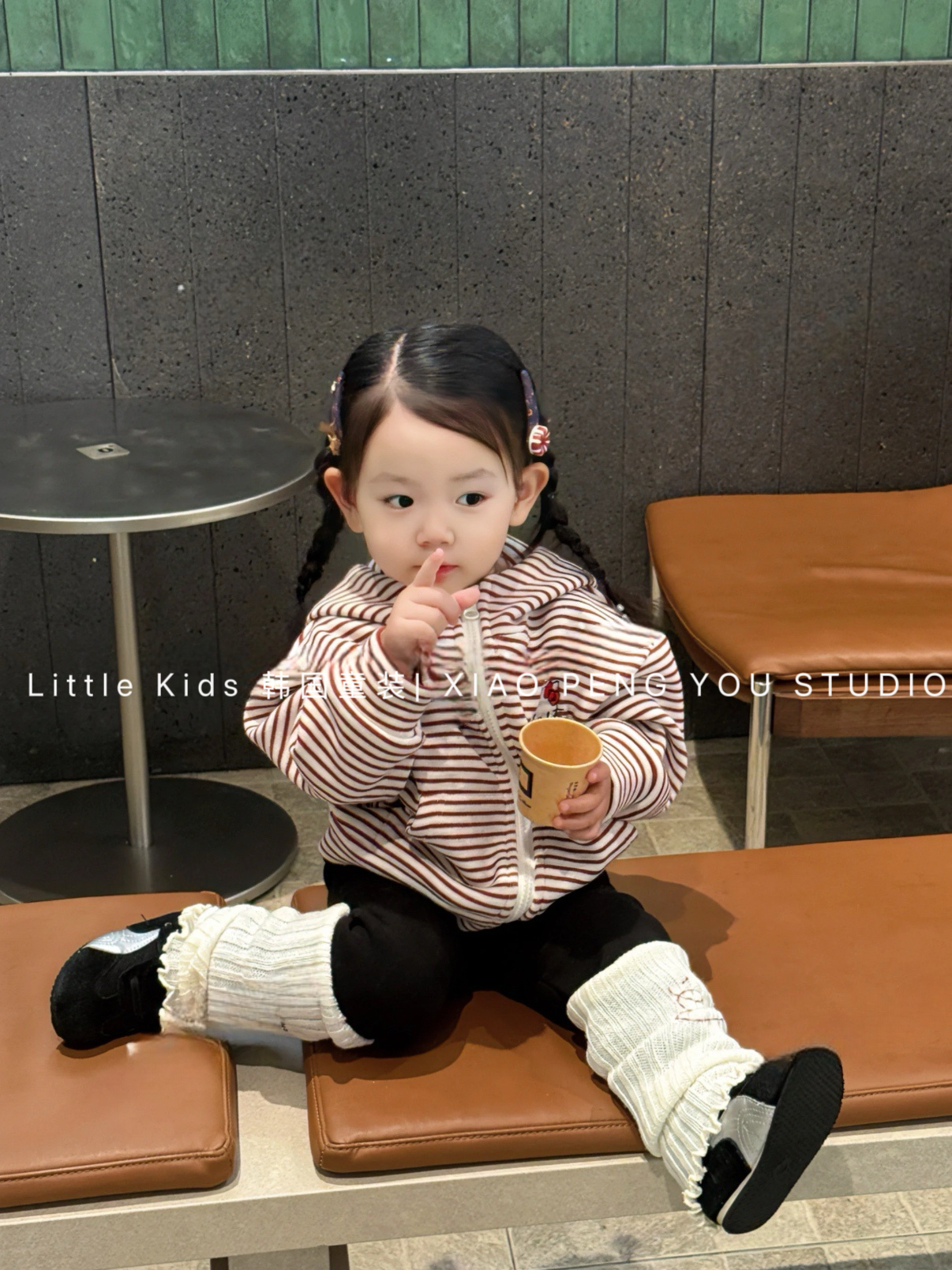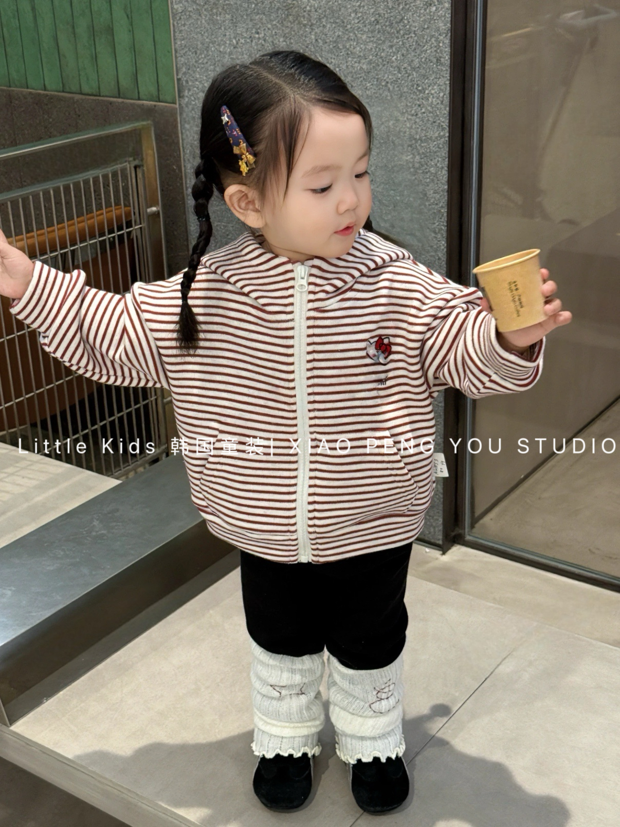 女童kt猫条纹外套秋冬2025女宝hellokitty羊羔绒加厚连帽卫衣开衫