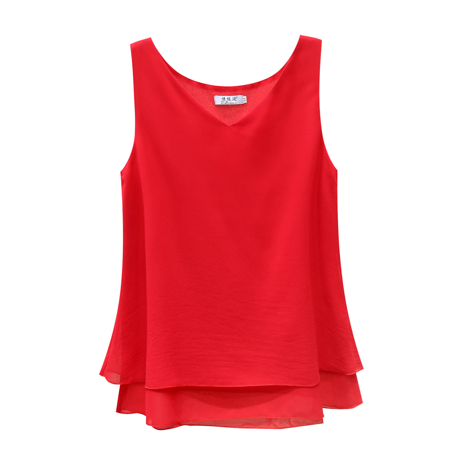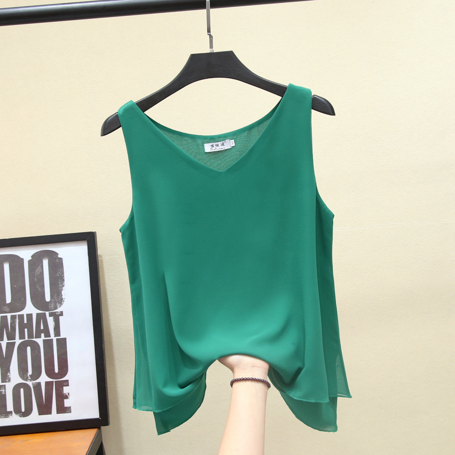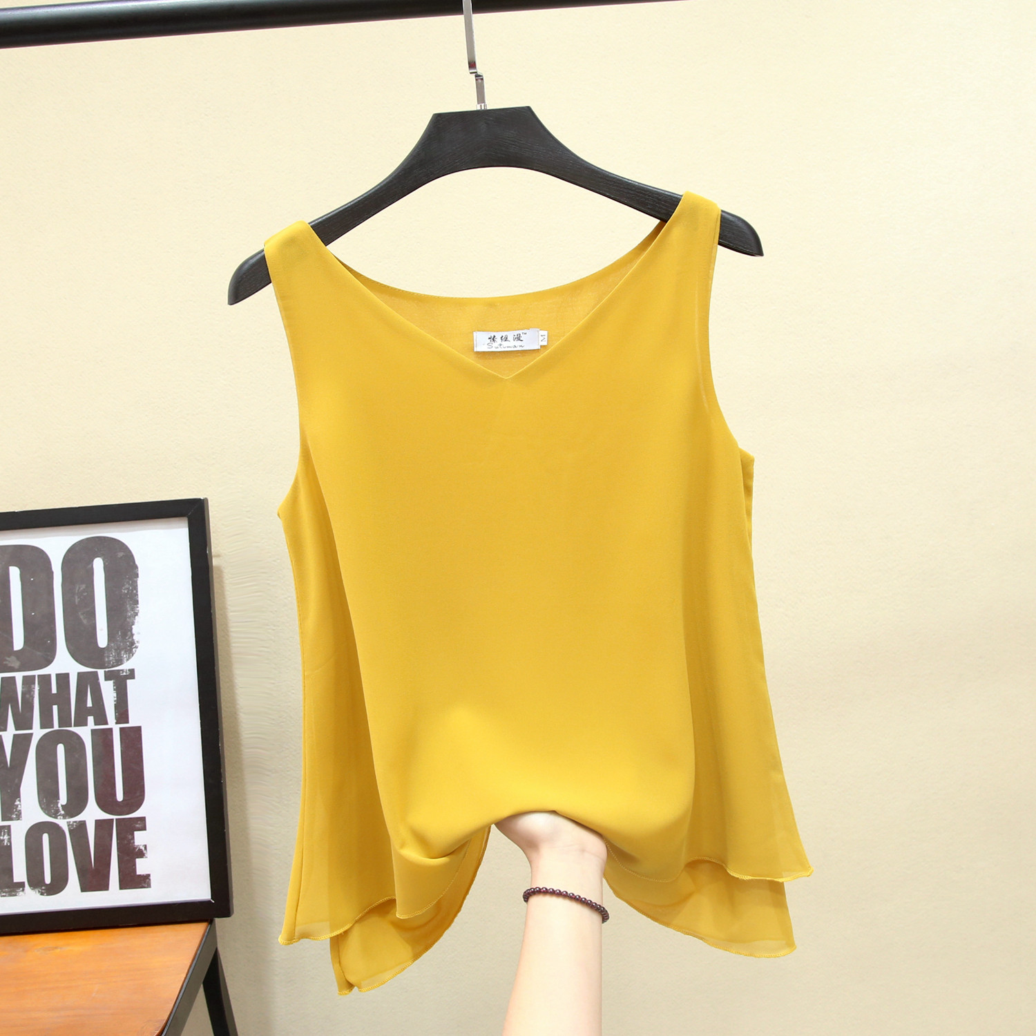 2023夏季新款韩版大码宽松百搭显瘦V领无袖雪纺衫背心上衣女夏潮