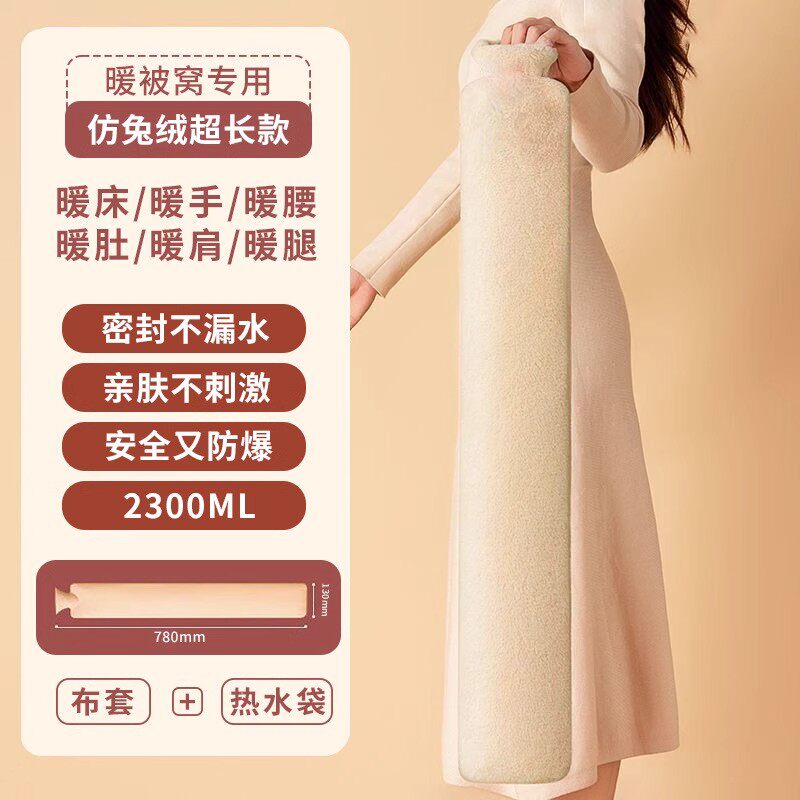 【下单立减30】加长款彷兔毛热水袋注水围腰防爆大暖肚子暖手宝