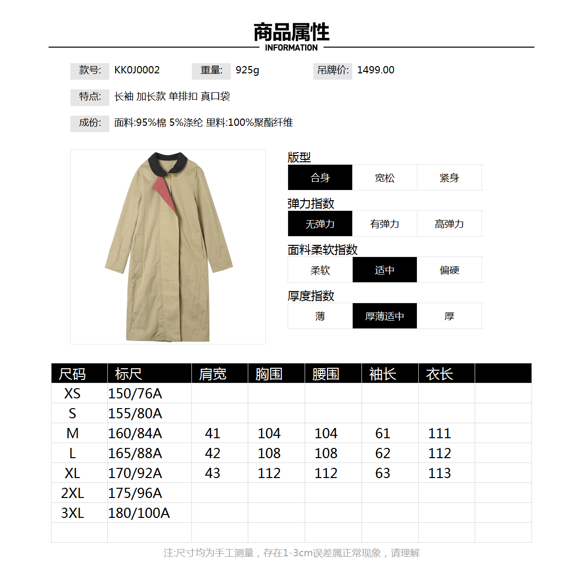常规女长款单排扣2026年春季