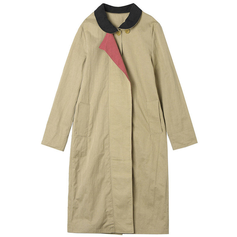 奥莱专柜品牌撤柜正品 KK春装2026新款 加长款撞色设计风衣外套女